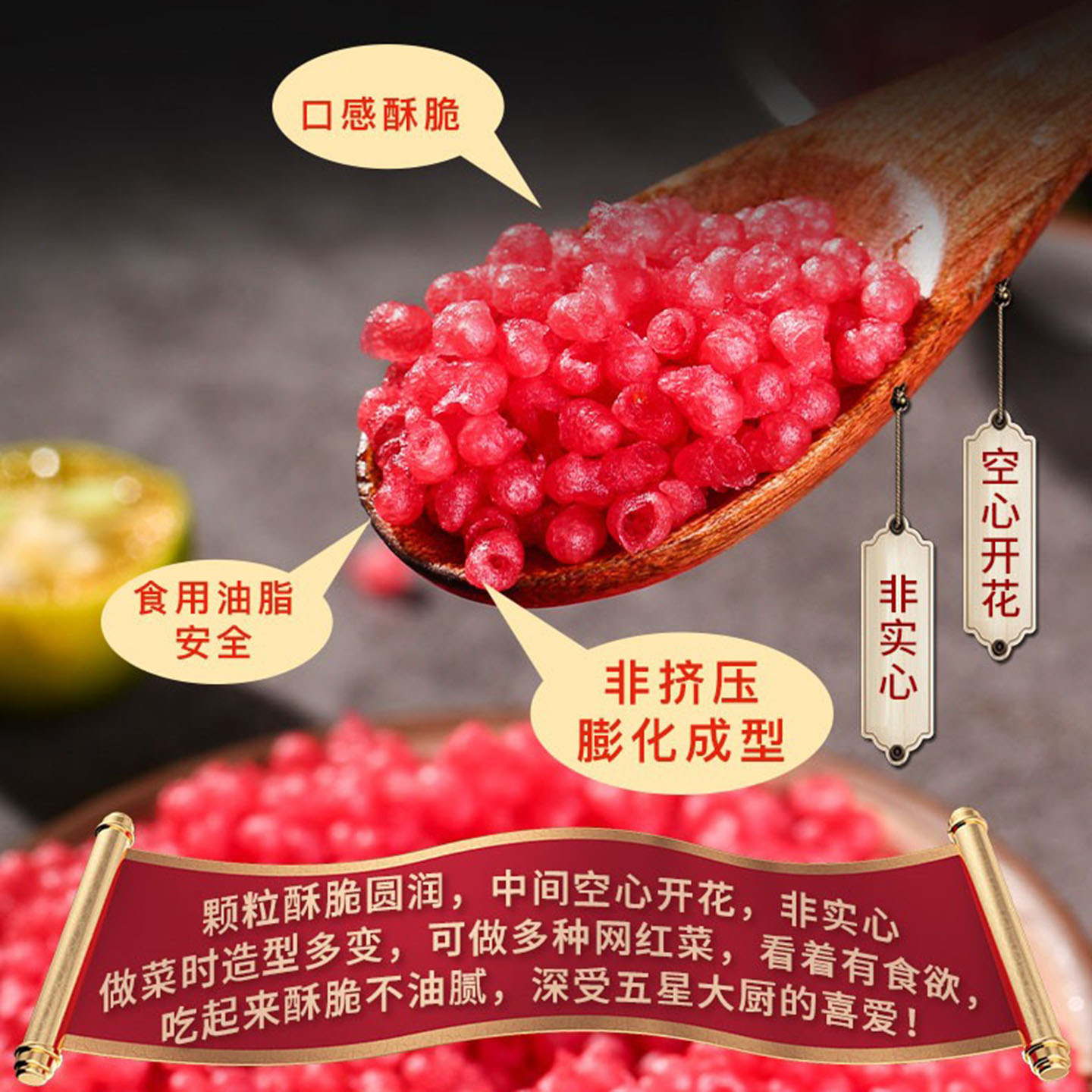 正宗梁某人脆花粒荔枝虾球红色脆花颗粒脆米粒商用翠花粒工厂直销