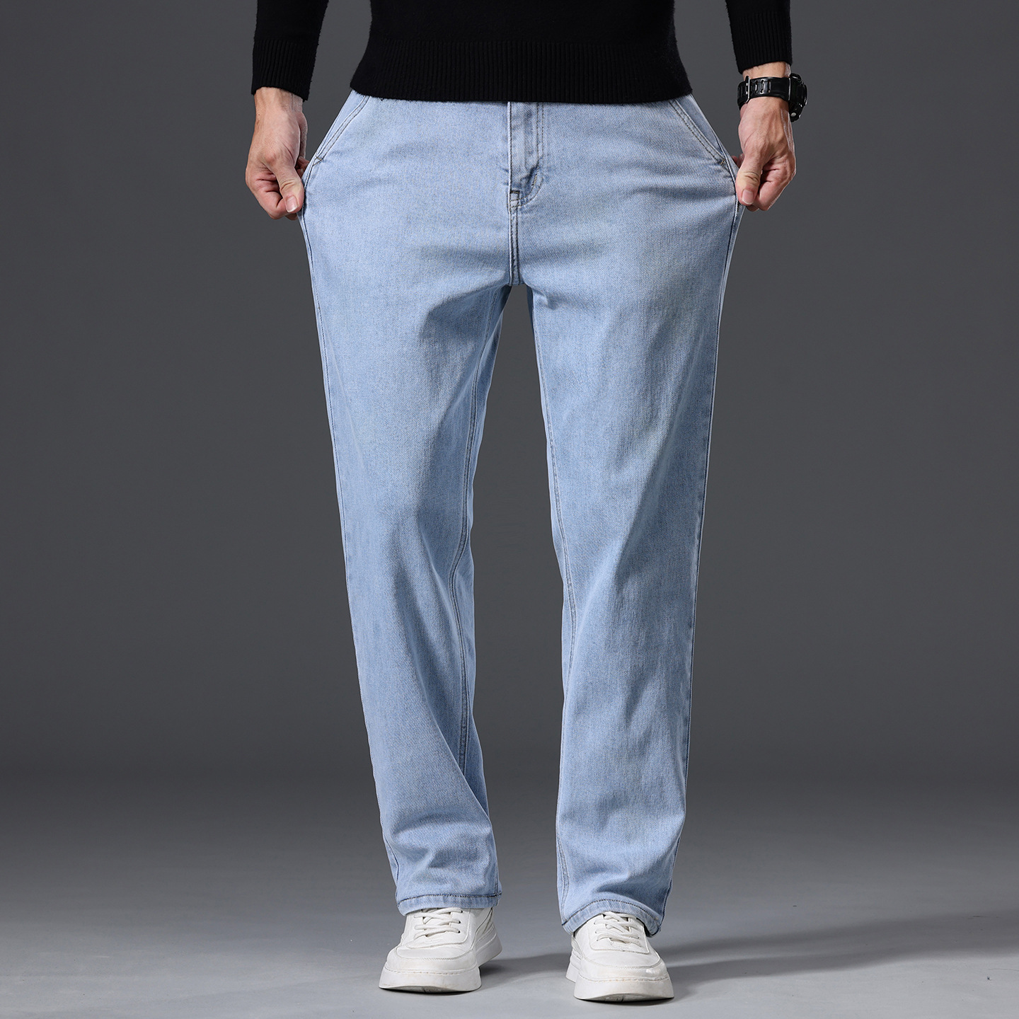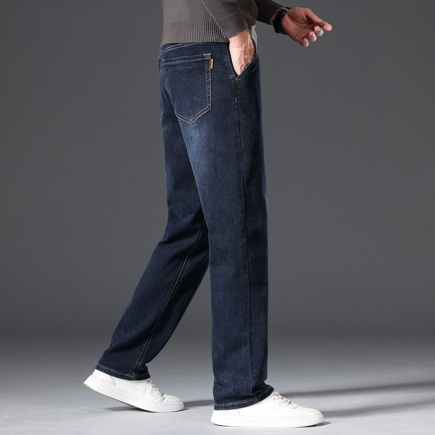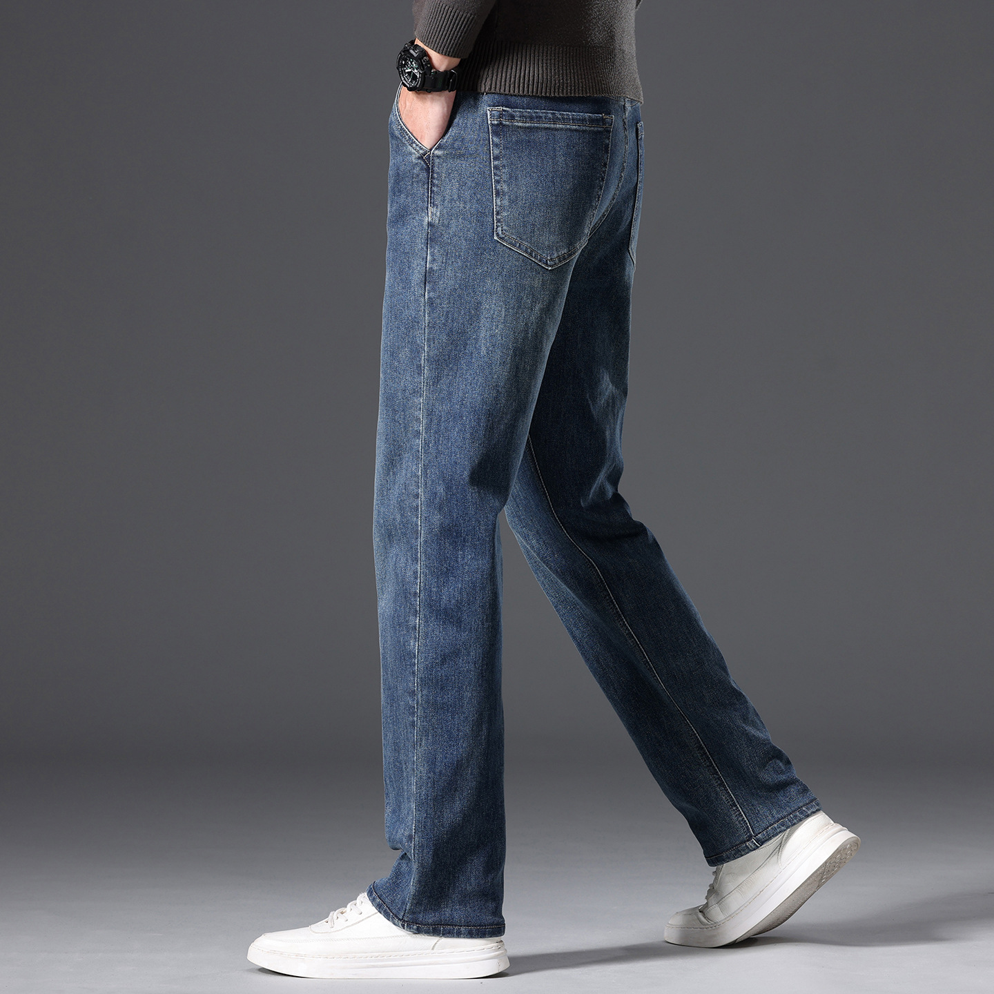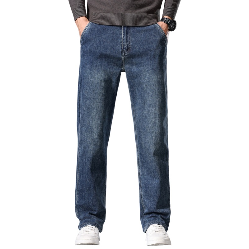 抖音秋冬浅蓝色宽松休闲牛仔裤男士直筒阔腿男裤秋冬厚款高腰深裆