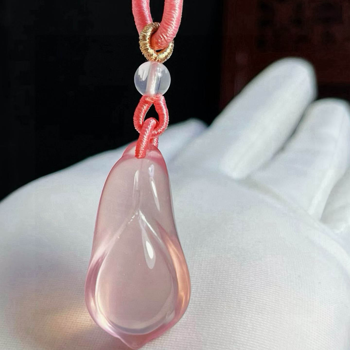 魅晶天然水晶晶体通透粉水晶玉兰花吊坠