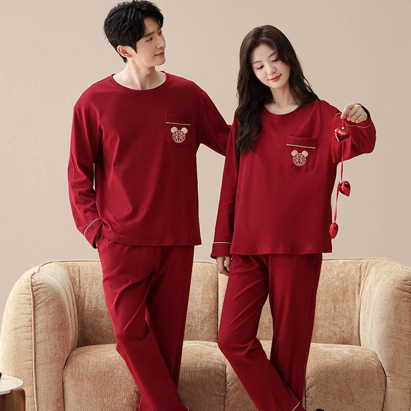 官方正品睡衣情侣春秋2025新款红色纯棉长袖女结婚男蛇本命年新婚