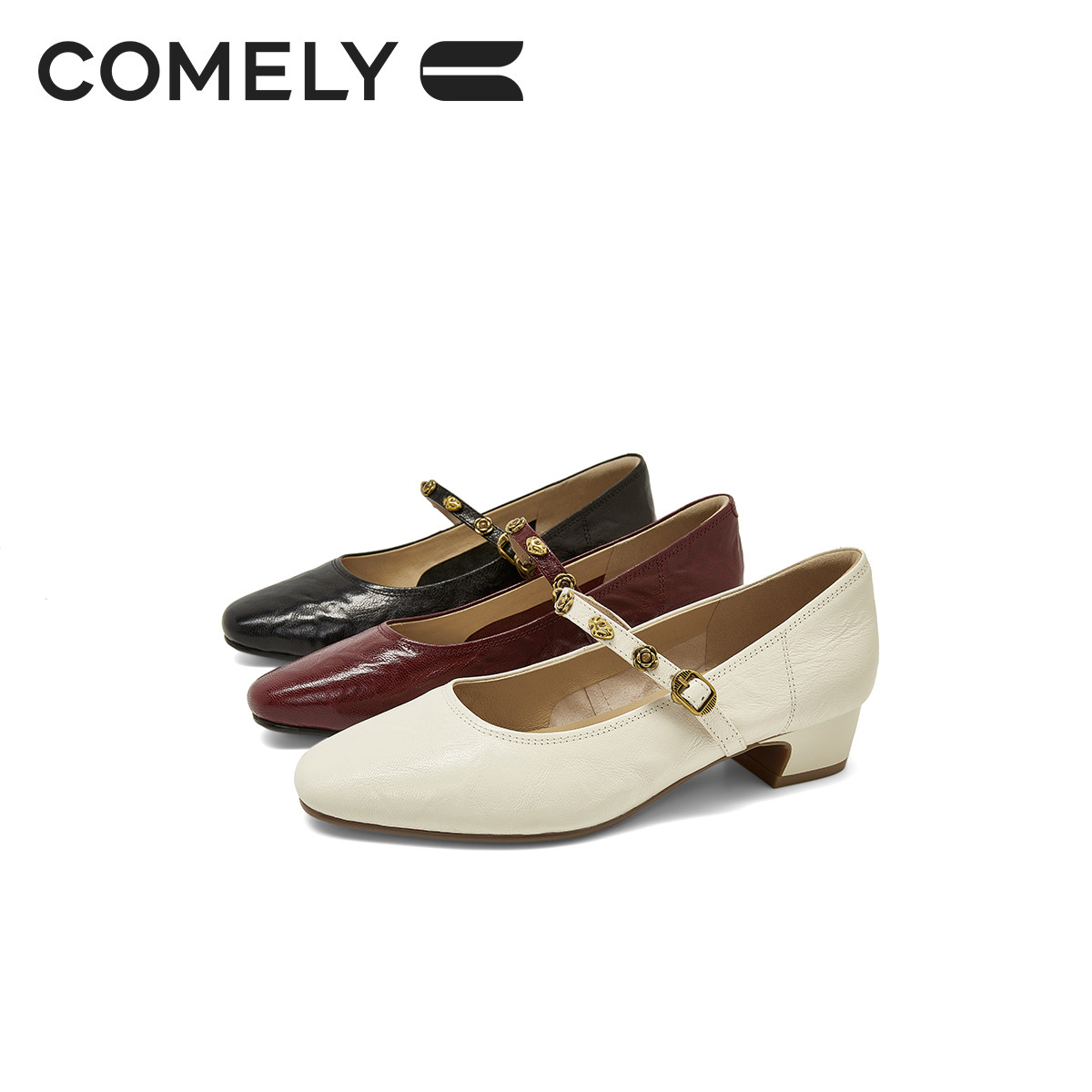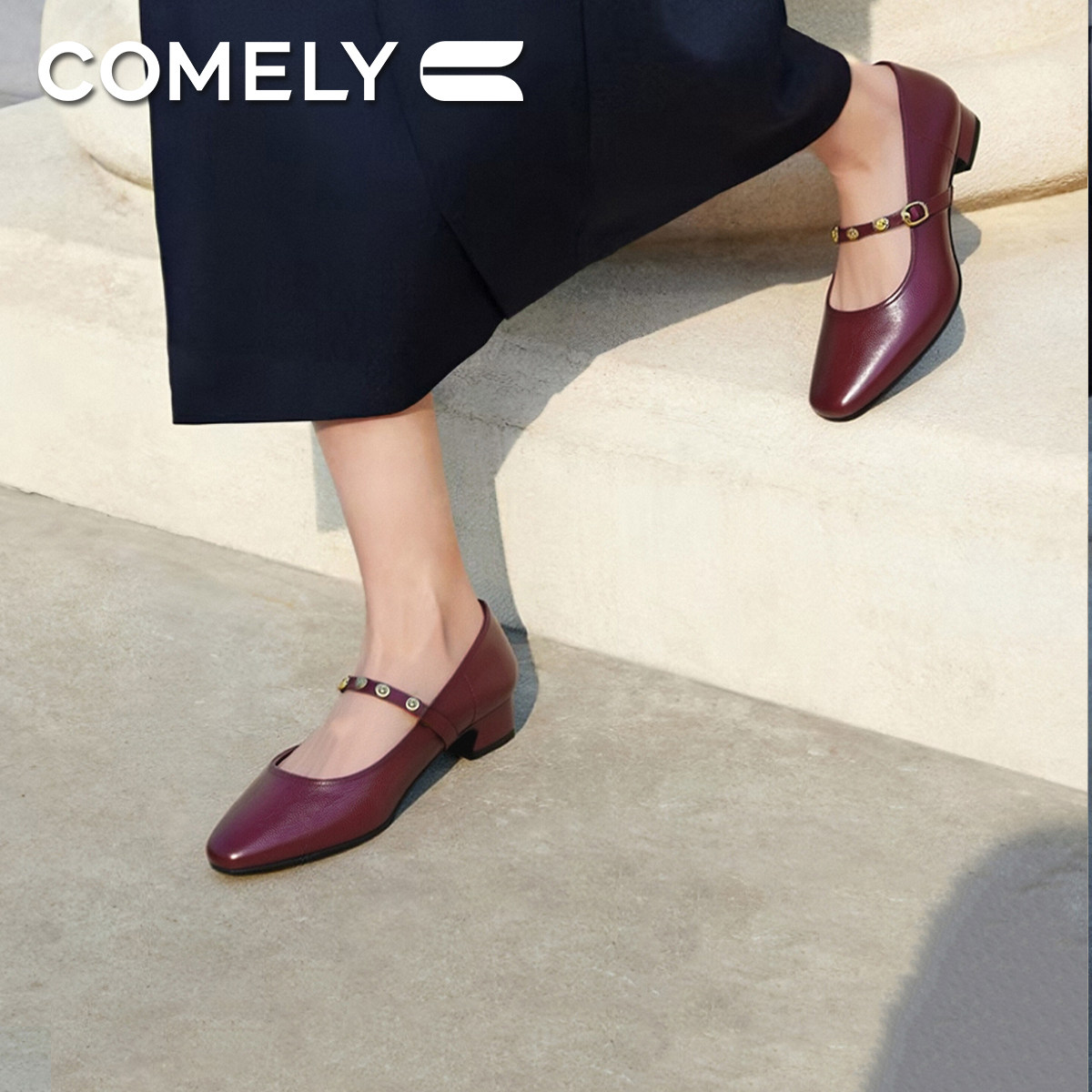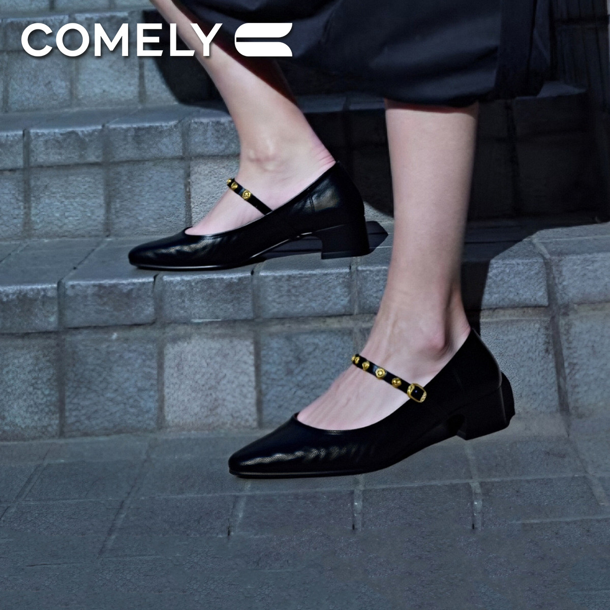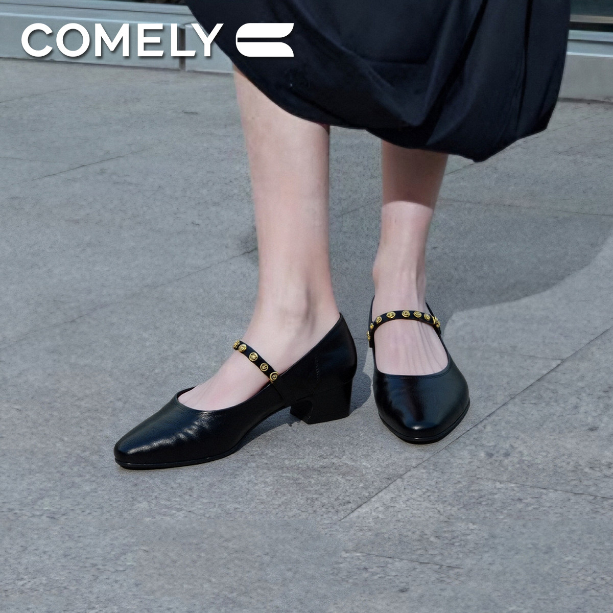 康莉商场同款羊皮玛丽珍女26年春季新款真皮粗跟单鞋防水台工作鞋