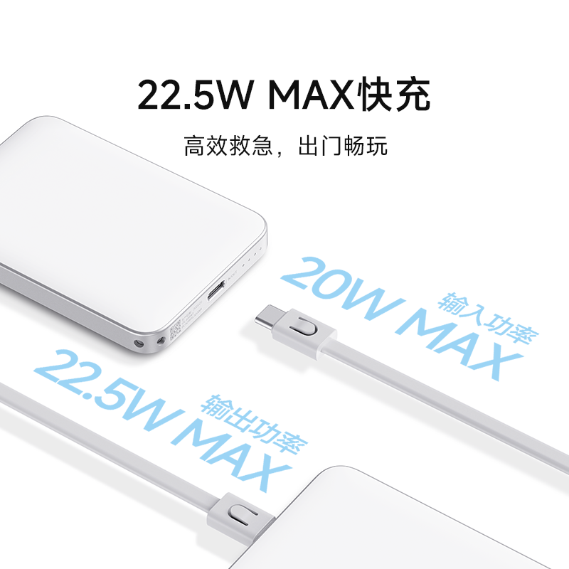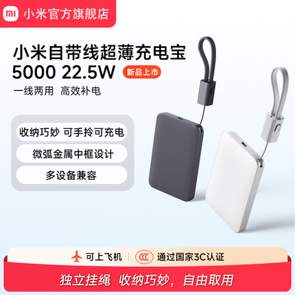 【3C认证】小米自带线超薄充电宝5000 22.5W充电宝超薄小巧适用于华为小米苹果15手机可上飞机火车