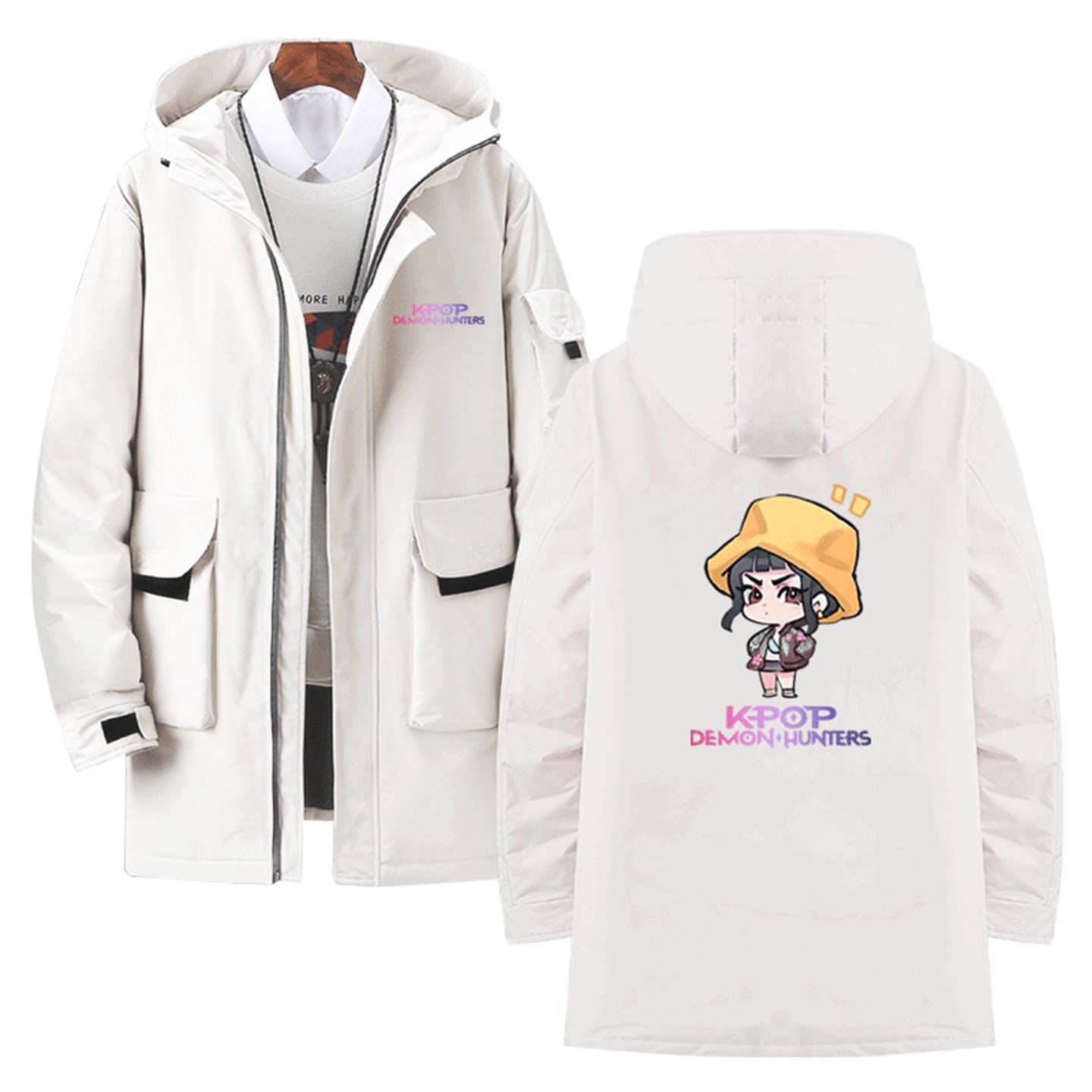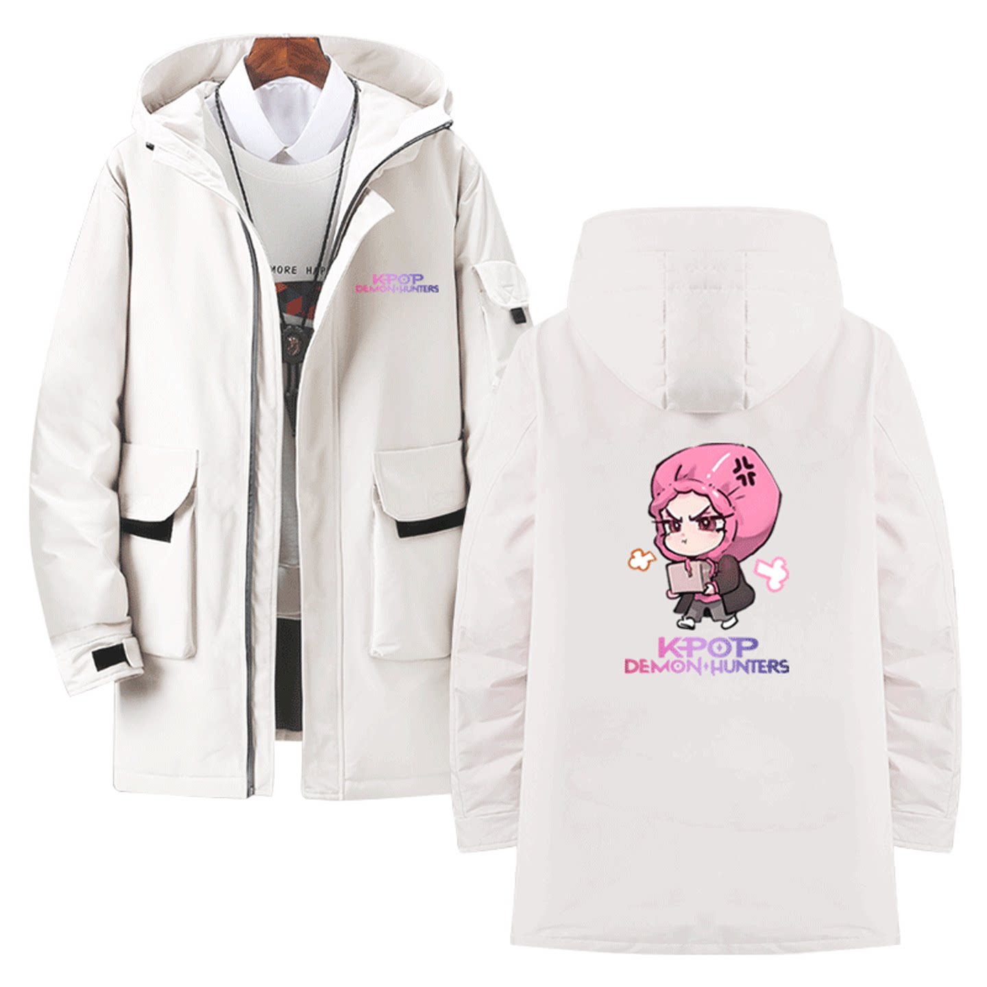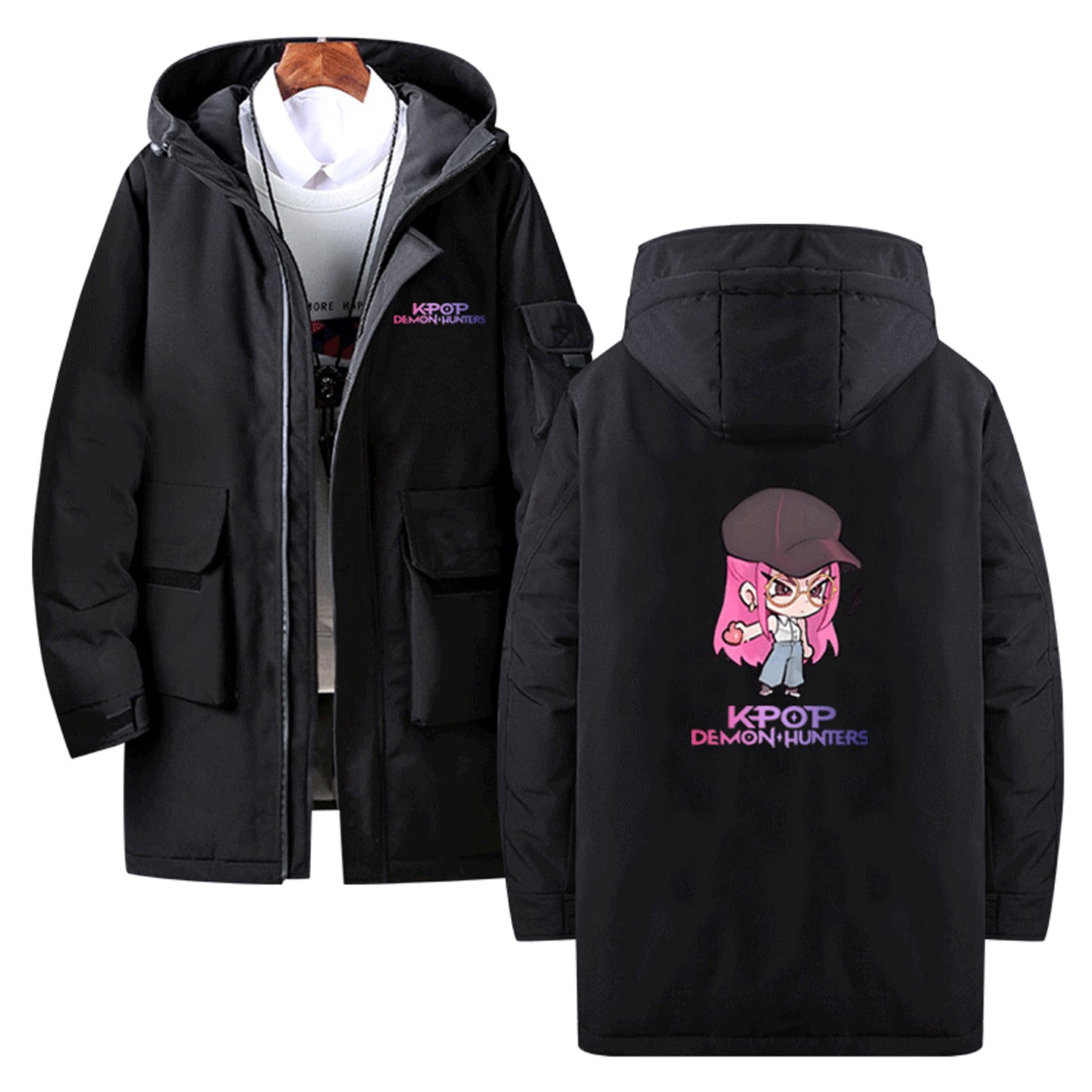 KPOP猎魔女团Q版鲁米米拉佐伊卡通可爱男女情侣定制中长款羽绒服