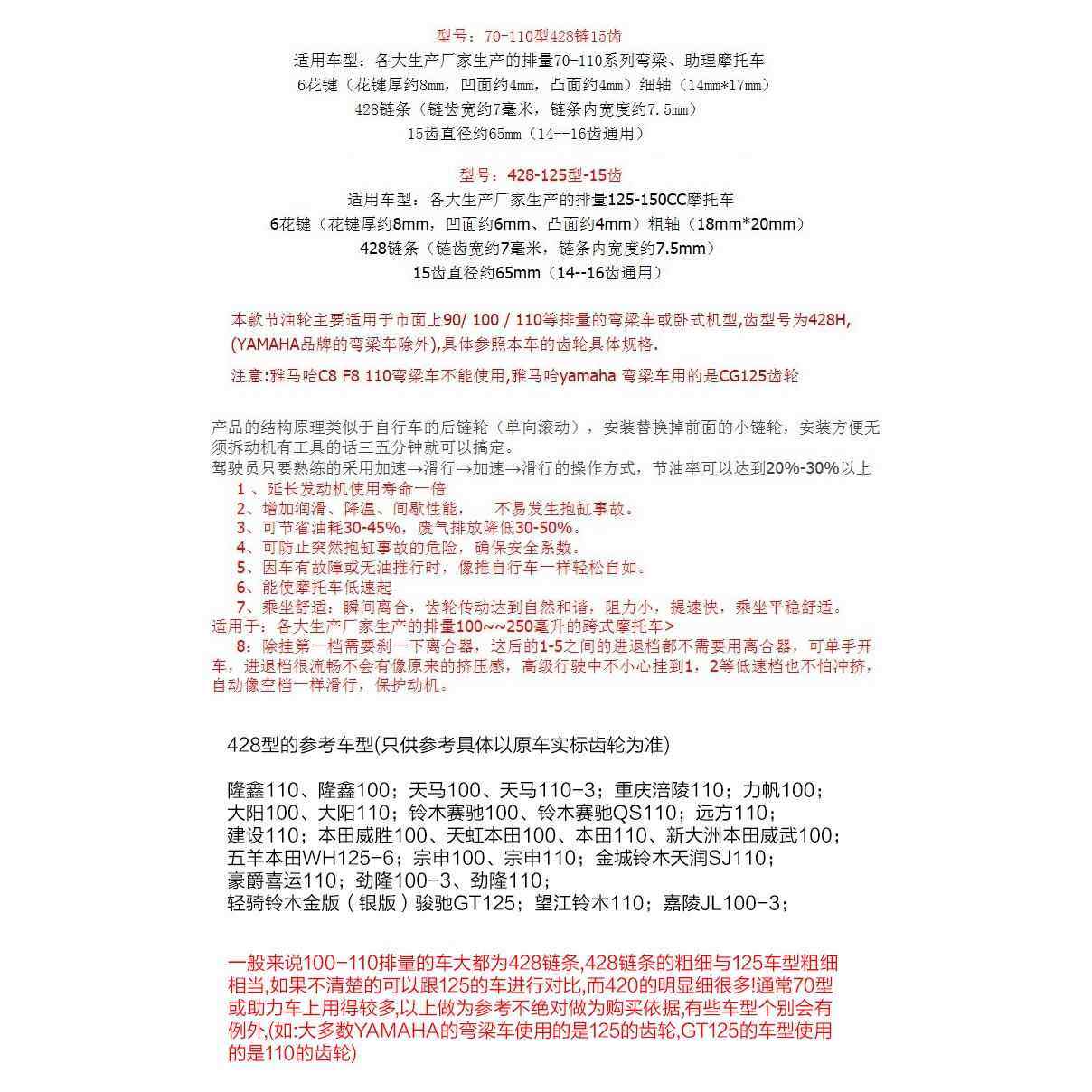 机车428型110 125弯梁机车骑士车15齿滑行轮 节油器小炼轮节油轮
