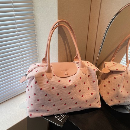 大容量旅行包女短途托特包外出轻便百搭帆布手提包学生通勤单肩包