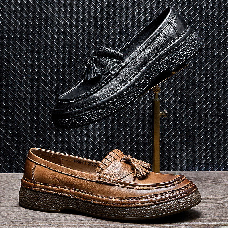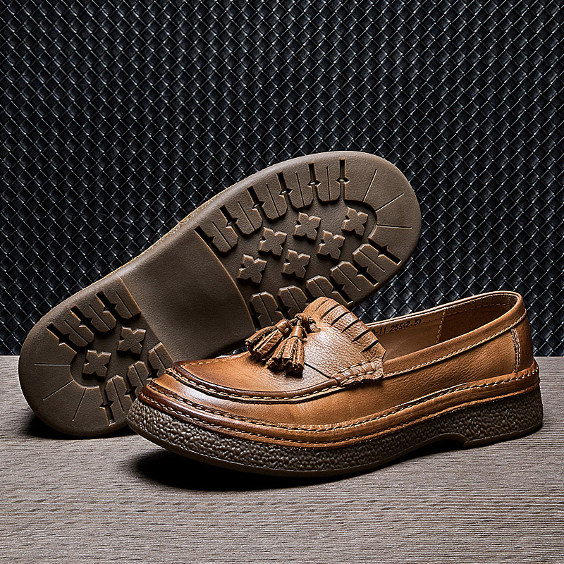 一脚蹬男鞋头层牛皮豆豆鞋流苏休闲皮鞋男夏季真皮透气英伦乐福鞋