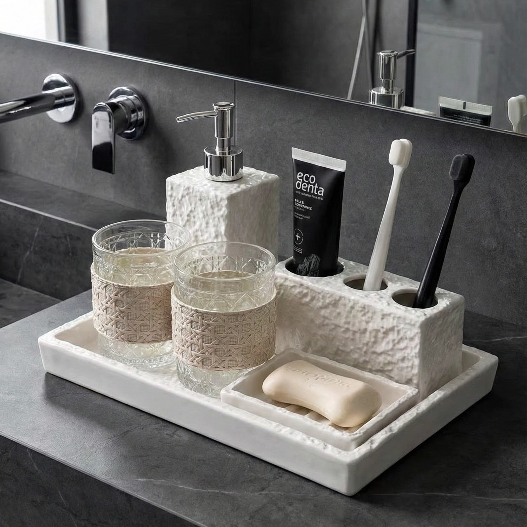 2026新款刷牙漱口杯高颜值电动牙刷牙膏置物架浴室洗漱台面收纳