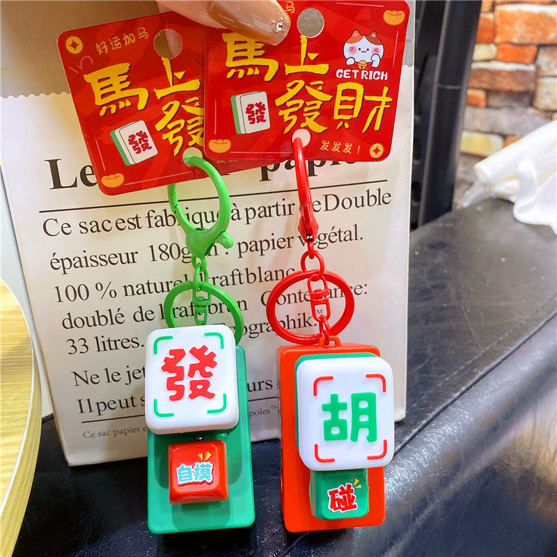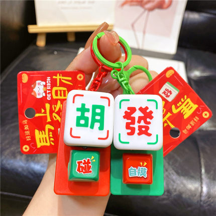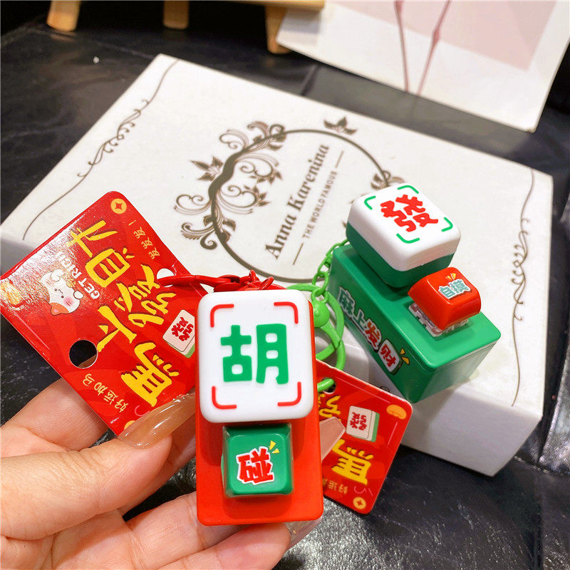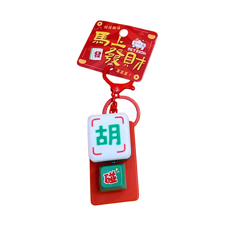 创意新年解压发财麻将两格按键治愈发声木鱼钥匙扣挂件情侣包挂饰