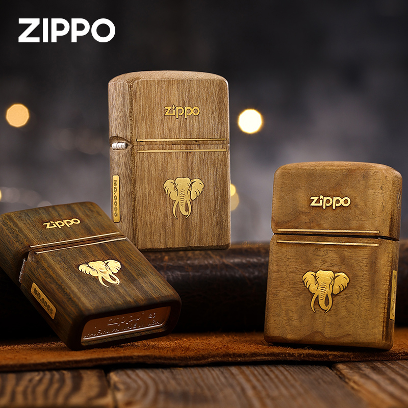 Zippo打火机大象官方正品香樟金丝楠木防风煤油送男朋友生日礼物