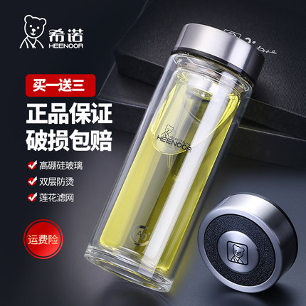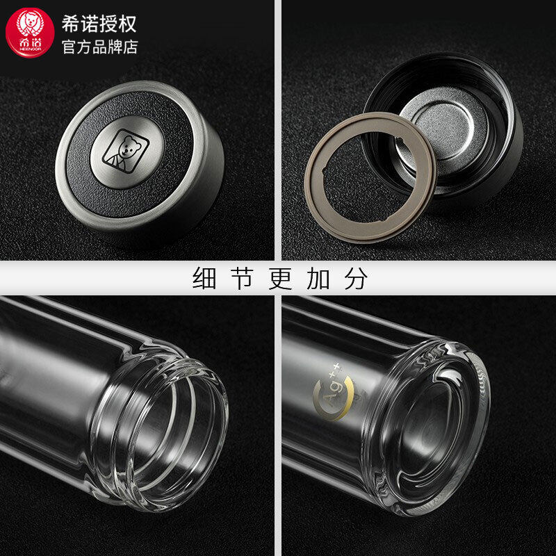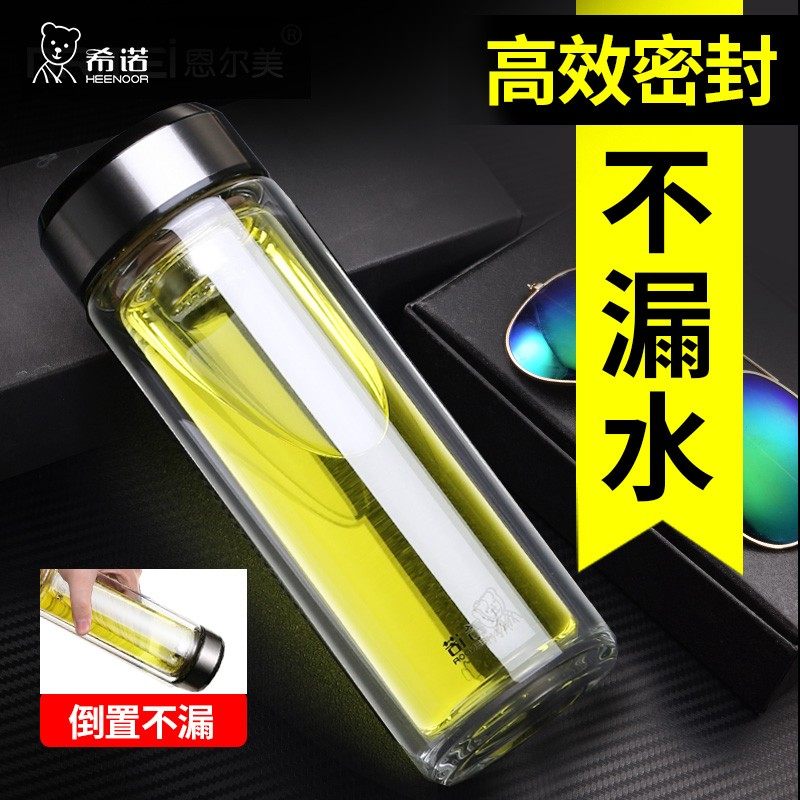 希诺加厚双层高硼硅玻璃水杯高档节日礼物车载办公便携茶水杯
