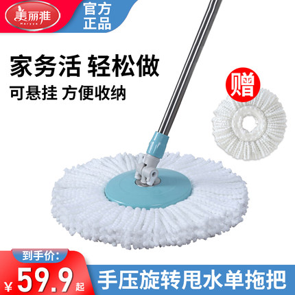 美丽雅旋转拖把杆家用单卖拖把不带桶原装配件拖头手压式甩水拖把