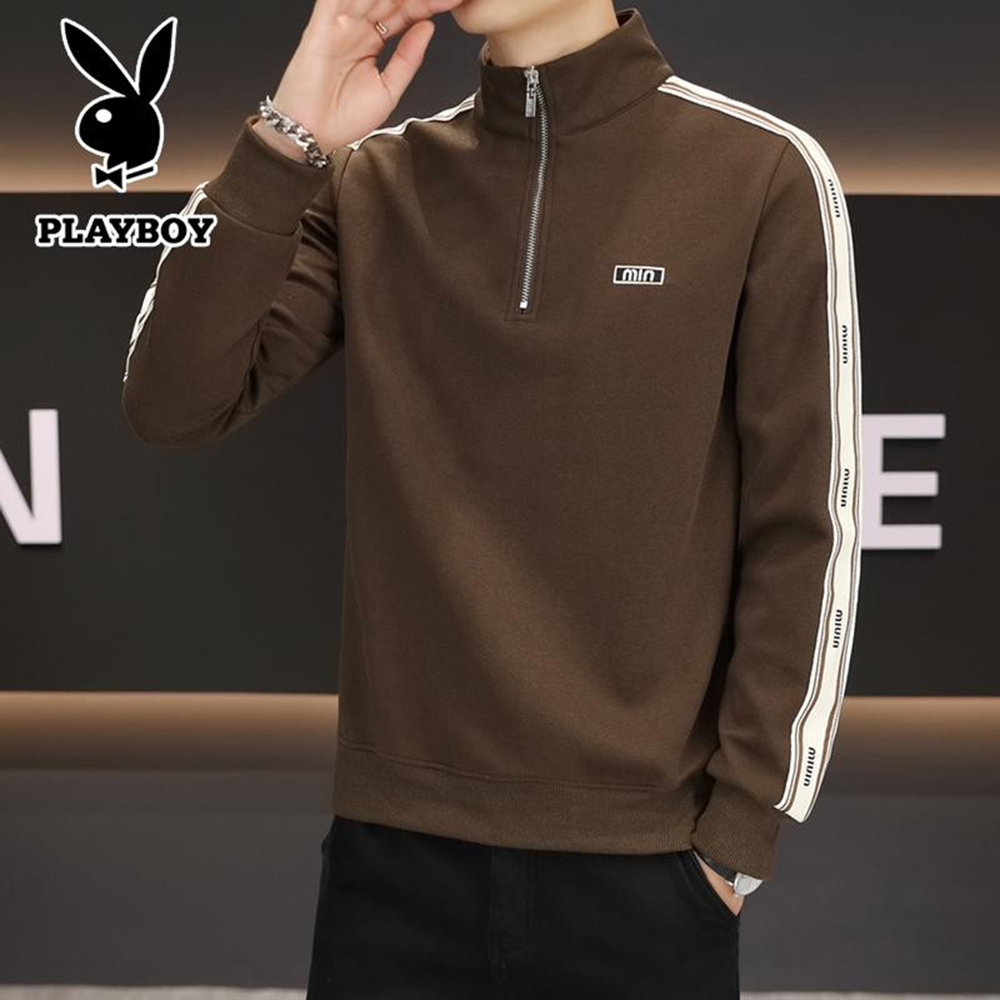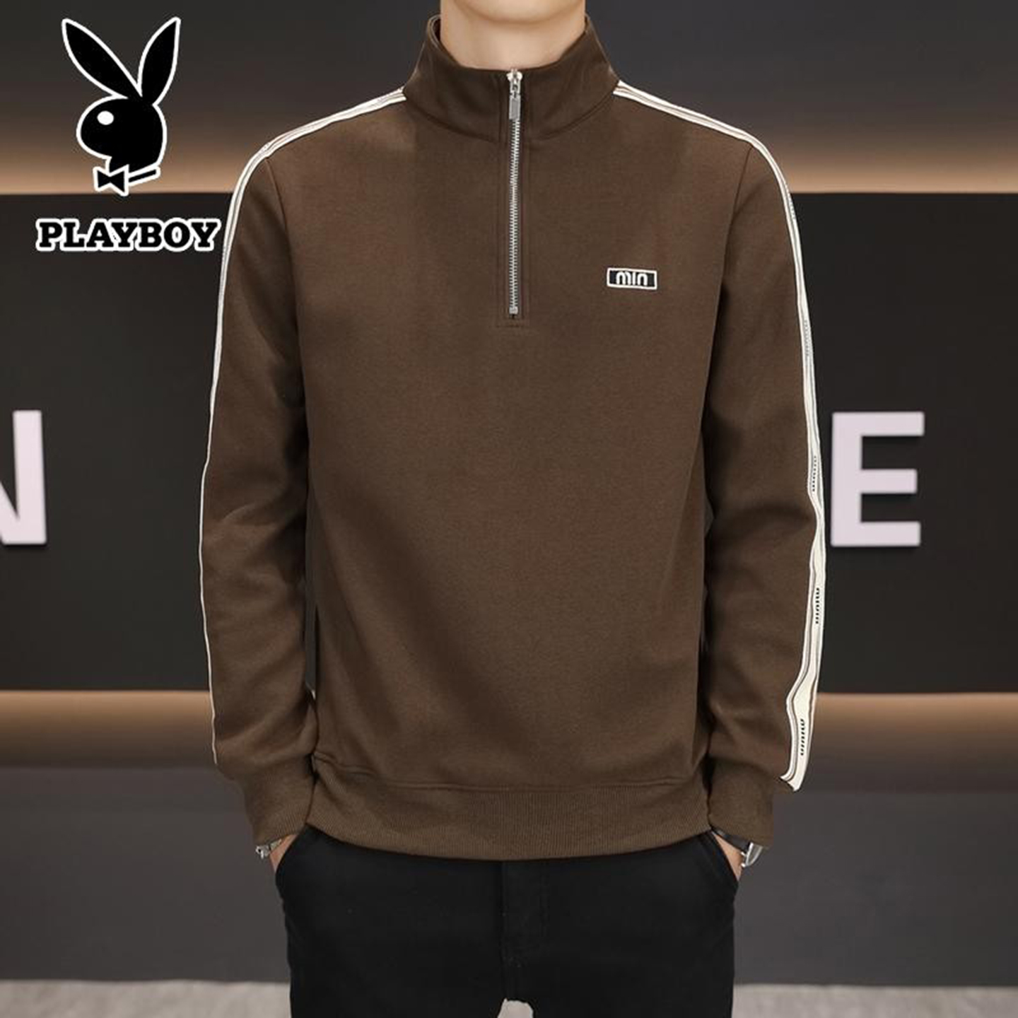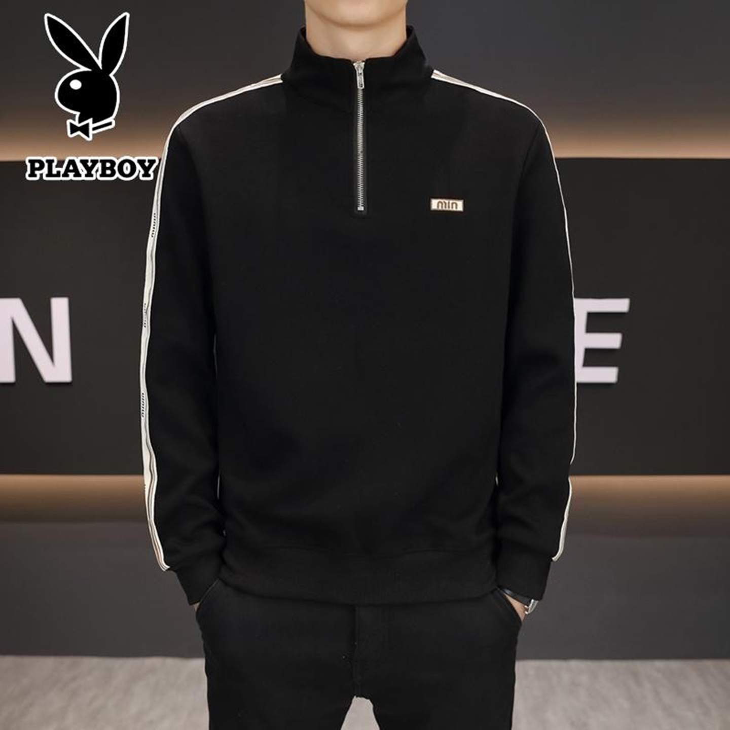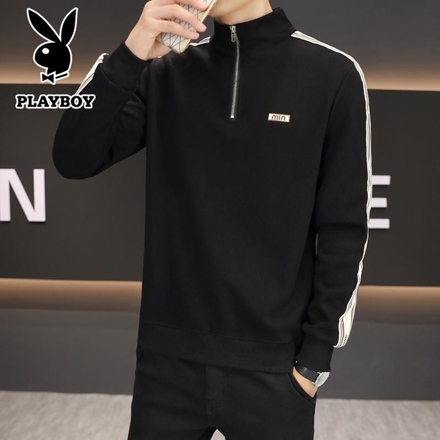 花花公子半拉链卫衣男士秋冬季立领长袖t恤潮流休闲打底衫上衣服