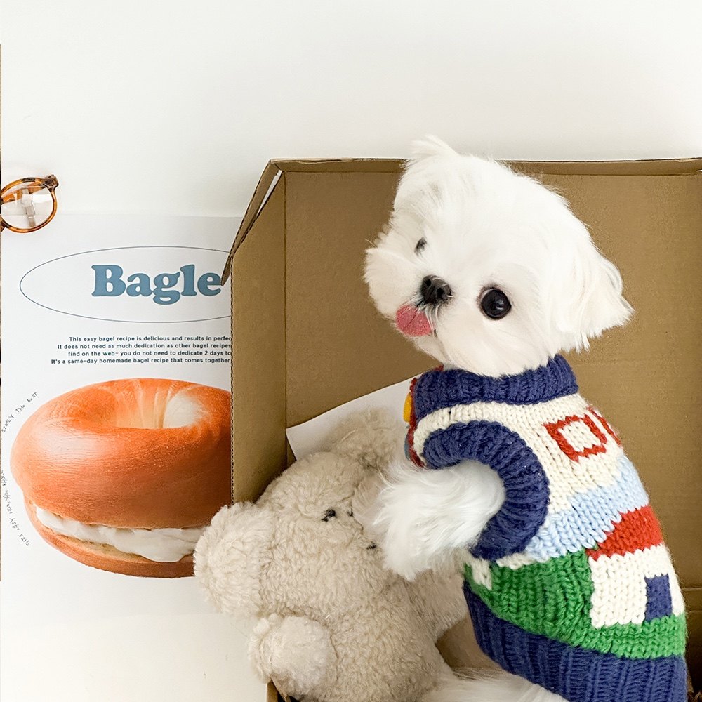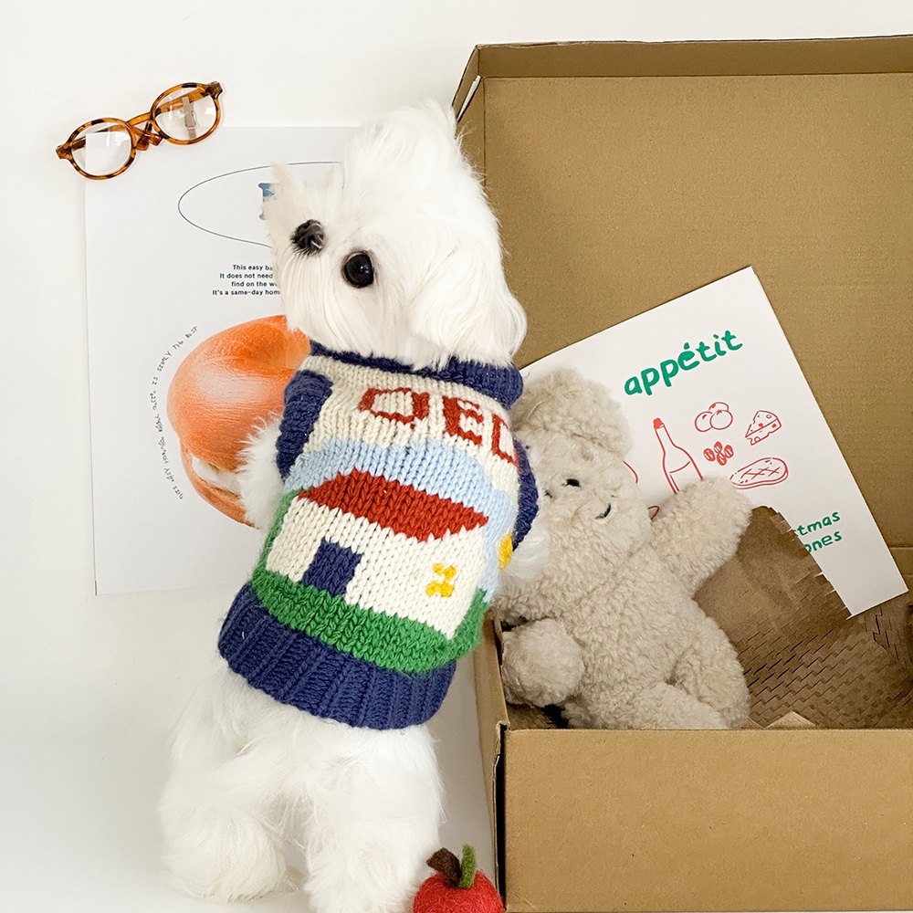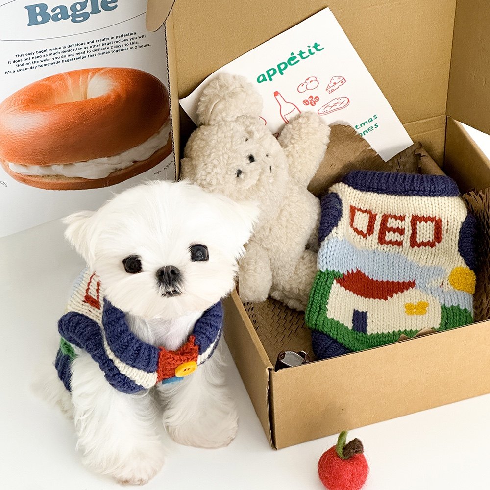 宠物复古手打粗针织风小型犬毛衣