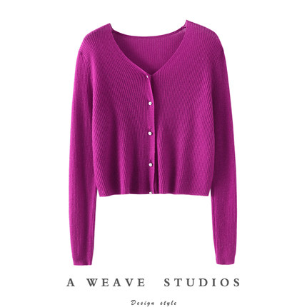 提气质!夏季防晒纯羊绒开衫女短款薄外套搭配裙子空调衫针织外套