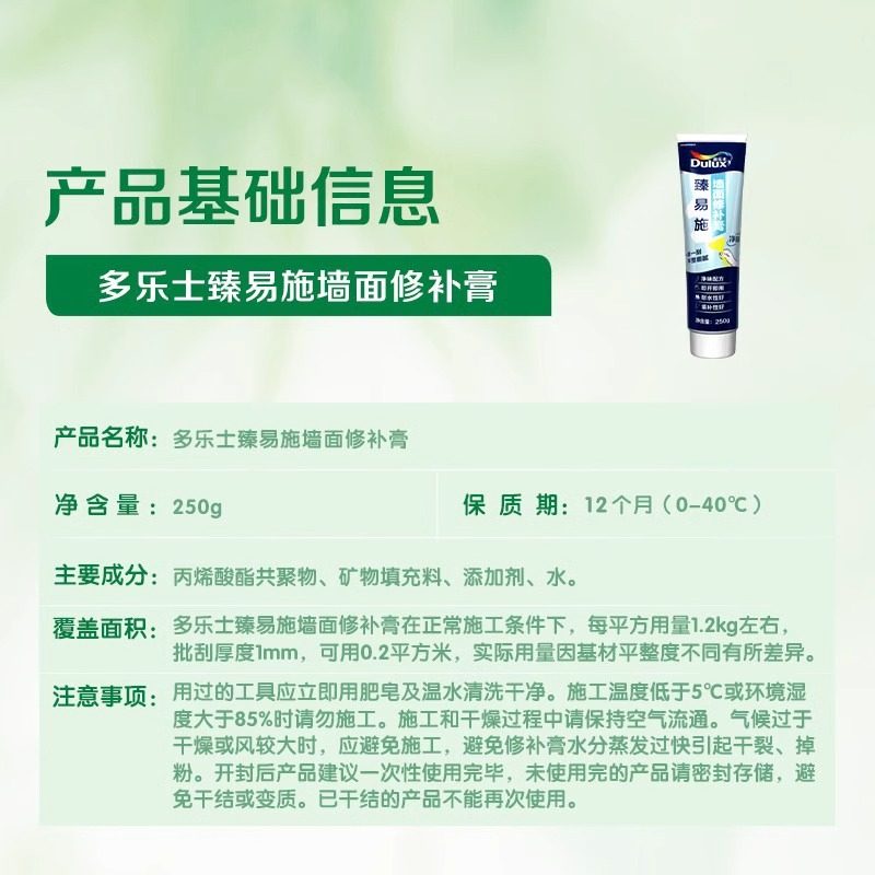 多乐士补墙膏墙面修补膏白色墙面墙壁白墙修复腻子粉家用防水防潮