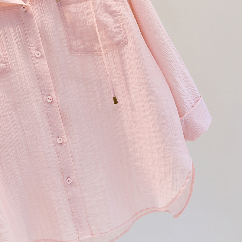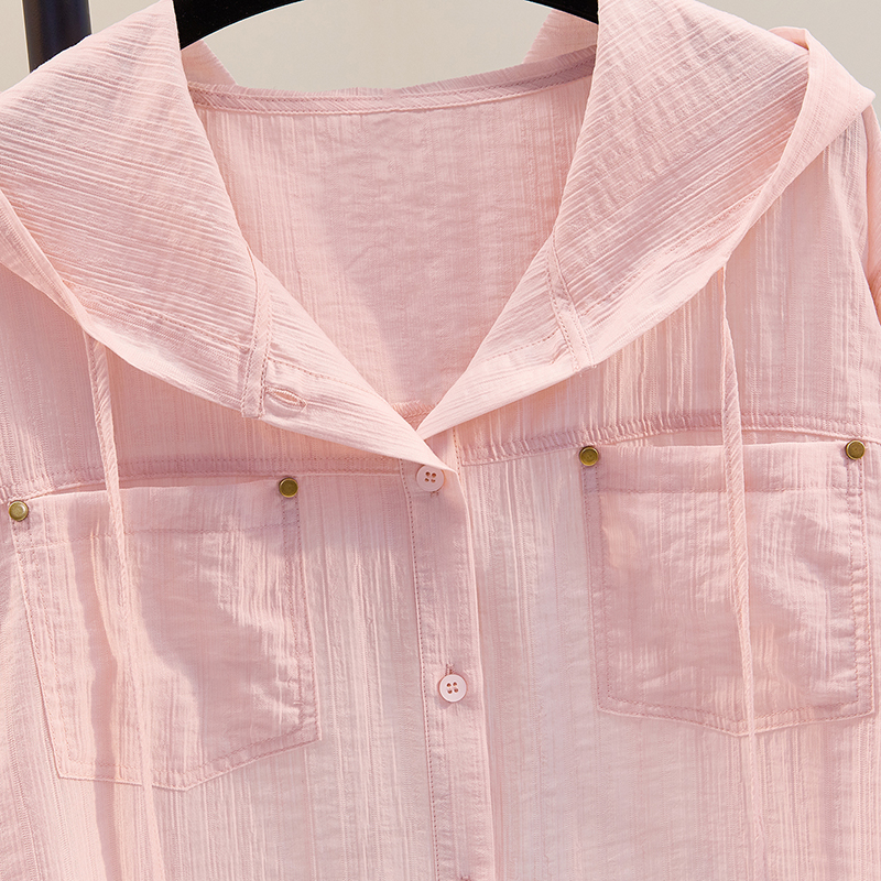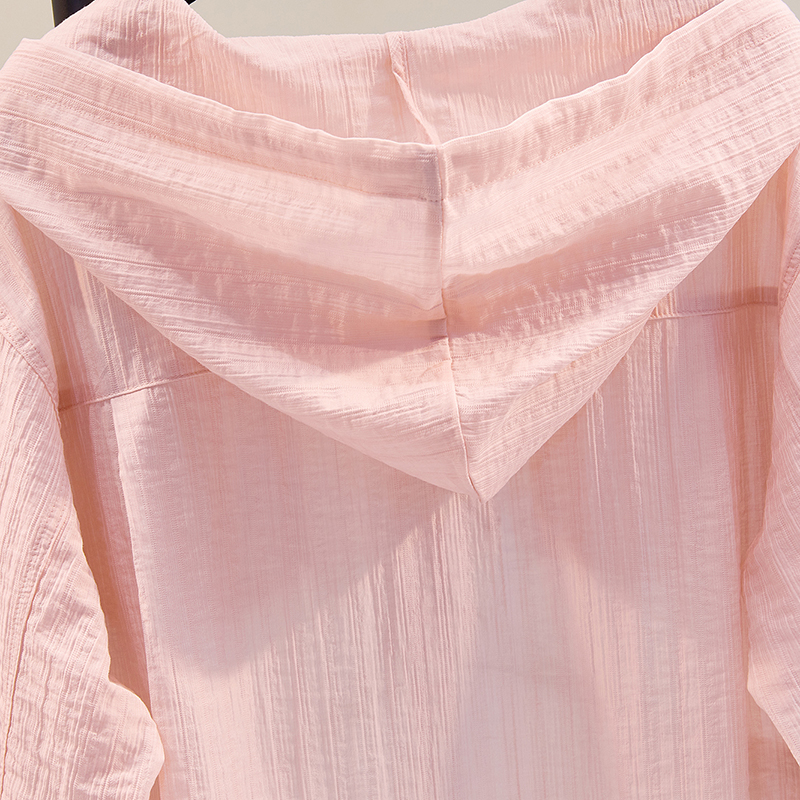 肌理感夏季轻薄粉色连帽防晒衬衫