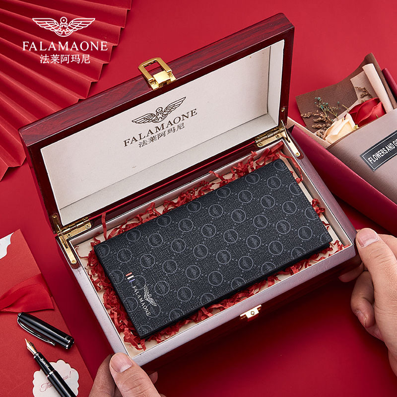 正品法莱阿玛尼男士钱包男长款钱夹2025新款礼盒装皮夹年轻人潮流