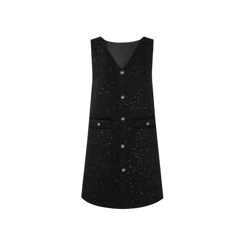 秋水伊人小香风黑色连衣裙2025年秋冬新款女装无袖V领百搭背心裙