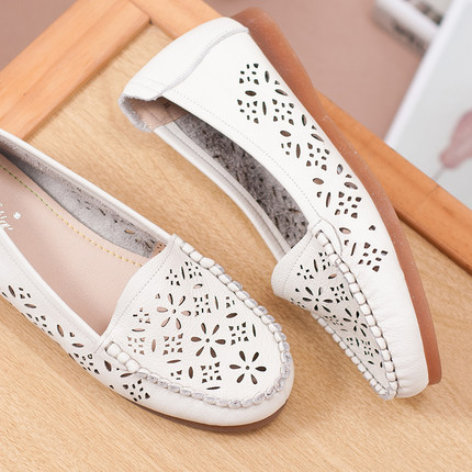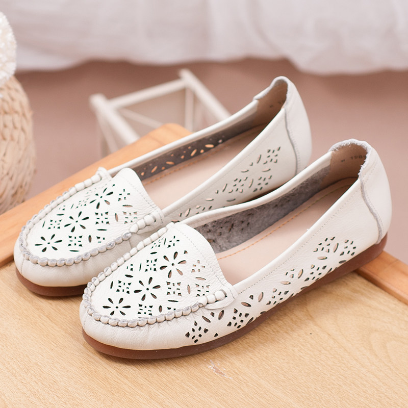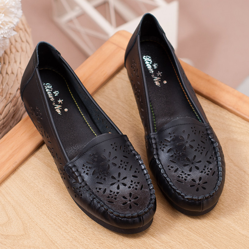 妈妈凉鞋平底防滑软底镂空真皮牛筋底夏季百搭中老年洞洞鞋妈妈鞋