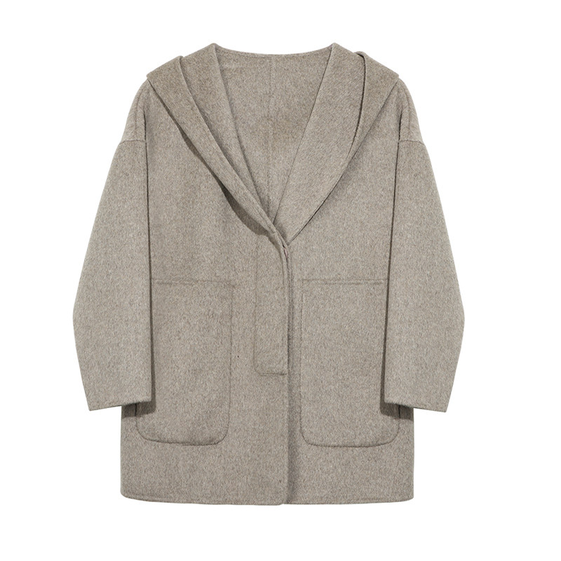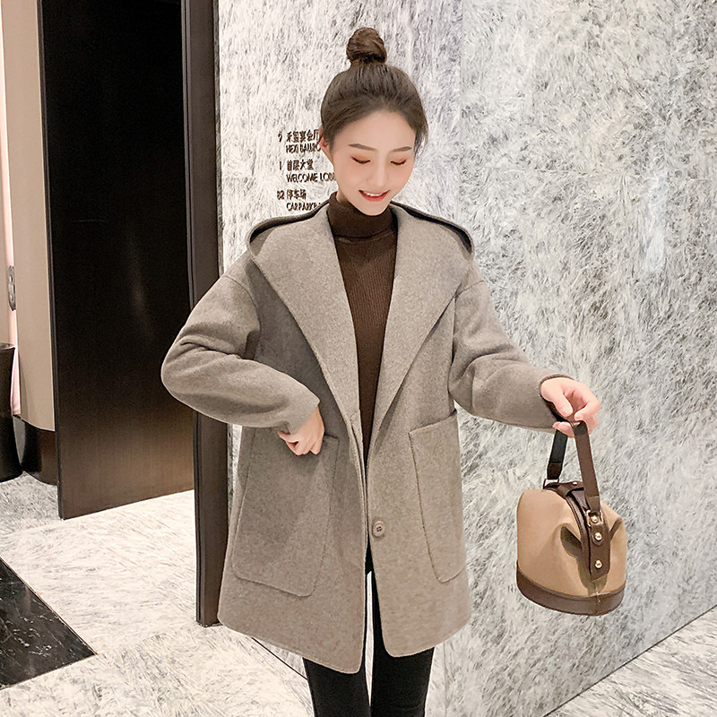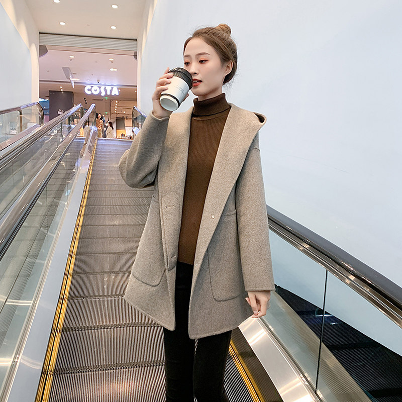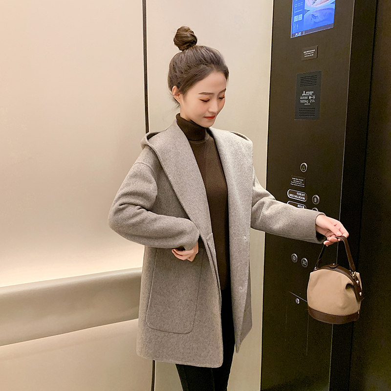 2025年新款女装春秋中长款毛呢外套女小个子连帽双面羊绒呢子大衣