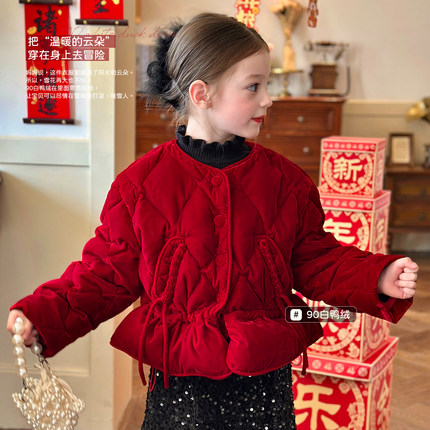栀了成长记童装女童90白鸭绒羽绒服2025冬季儿童红色保暖短款外套