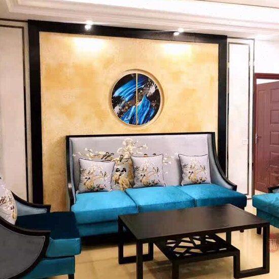 新中式高背实木沙发酒店会所单人沙发椅现代茶楼工程洽谈屏风卡座