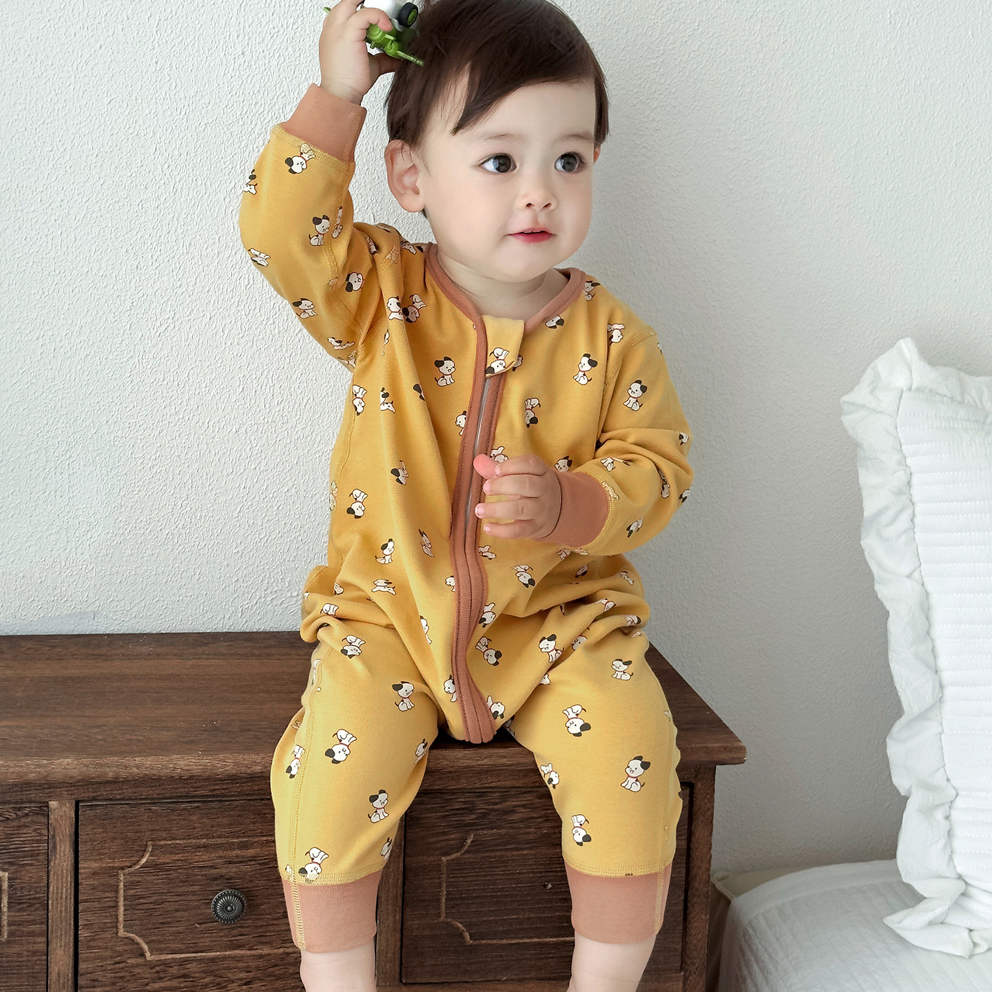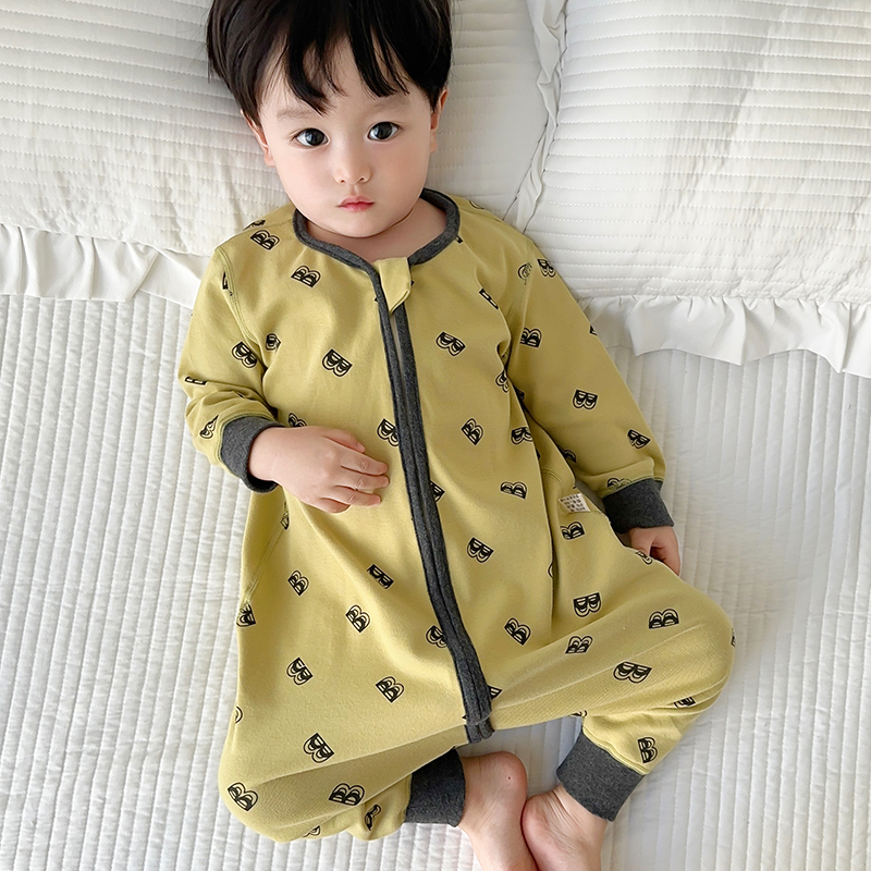 宝宝纯棉睡袋男童春秋分腿防踢被女童卡通无骨连体衣儿童四季睡衣