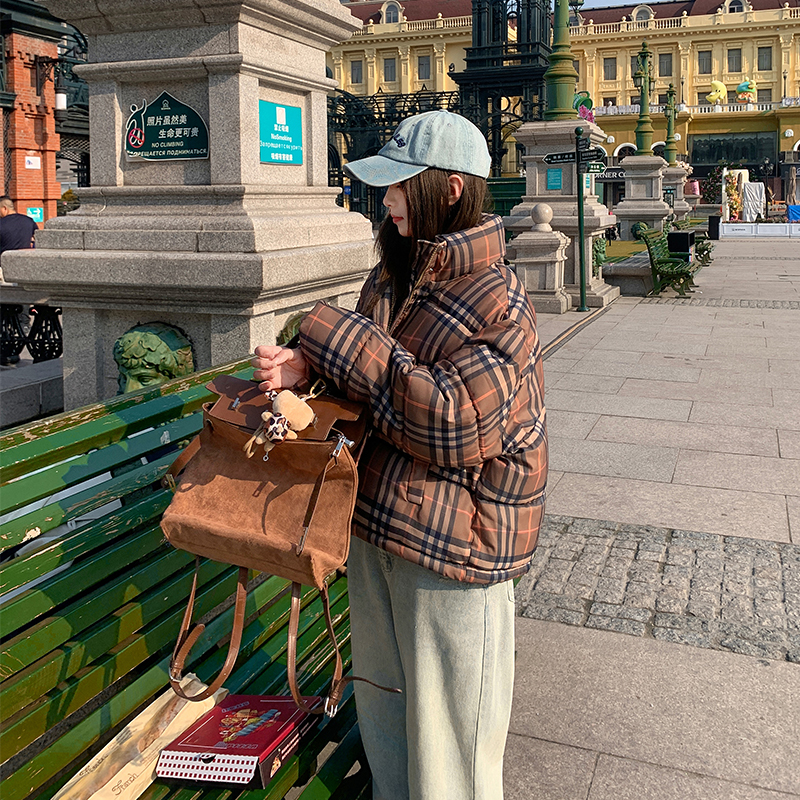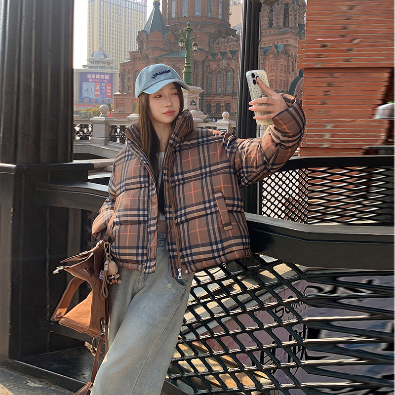 冬装矮个子女装150cm显高155XXXS加小码格子短款棉服外套面包服潮