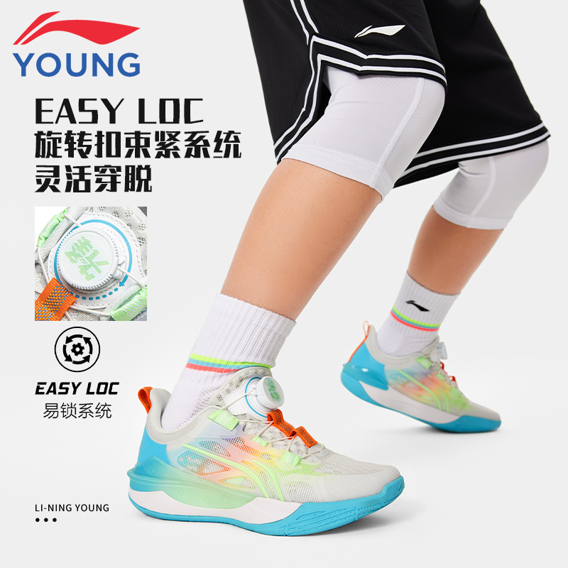 李宁儿童篮球鞋男大童2025春夏新款青少年网面透气专业实战运动鞋