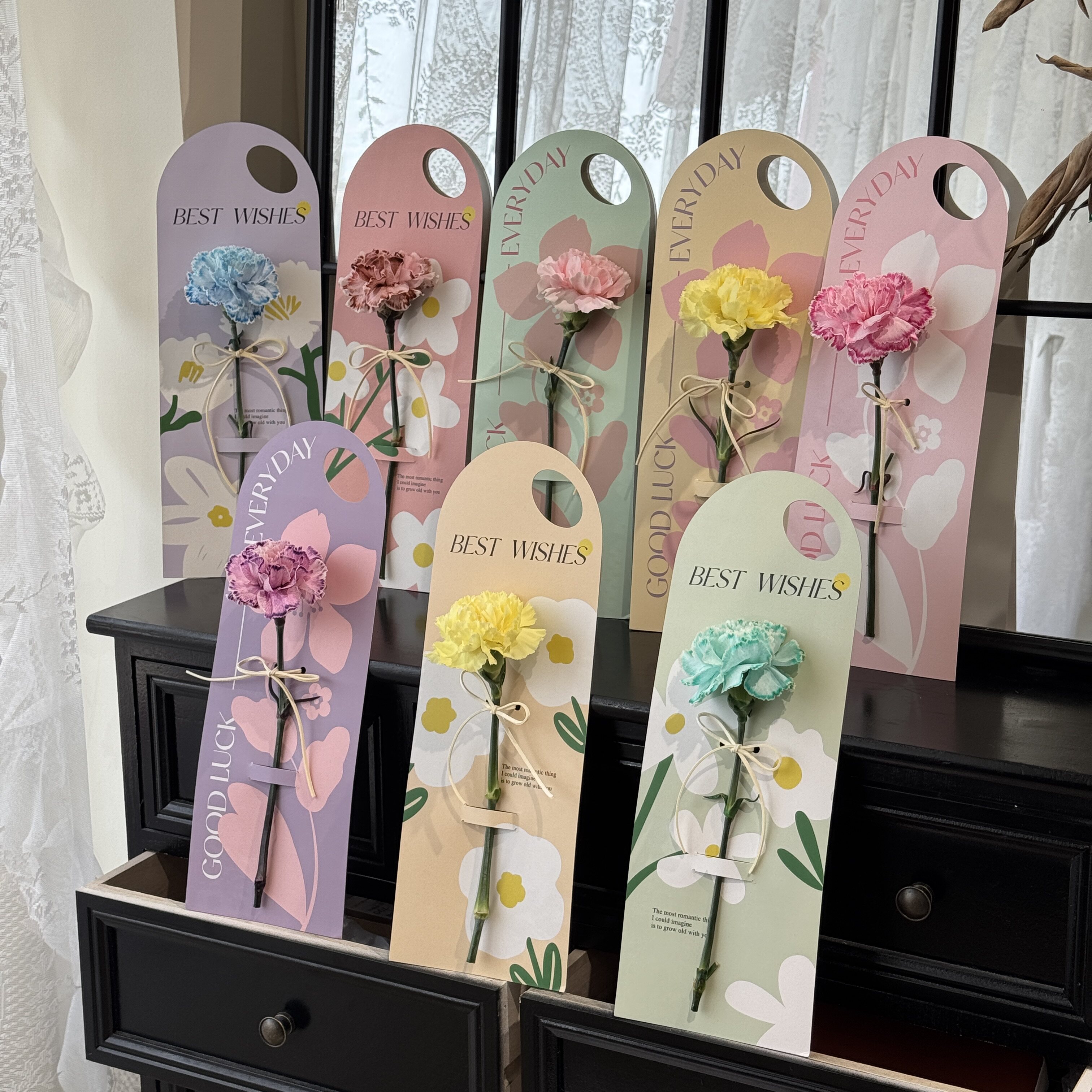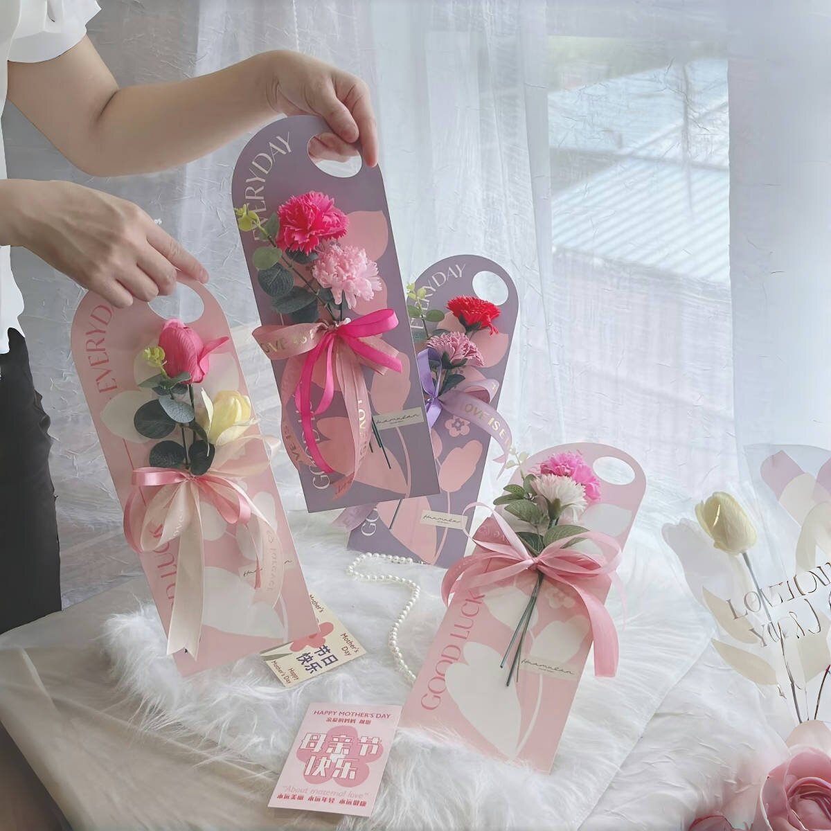 手拎插花盒花卡单支花束包装盒