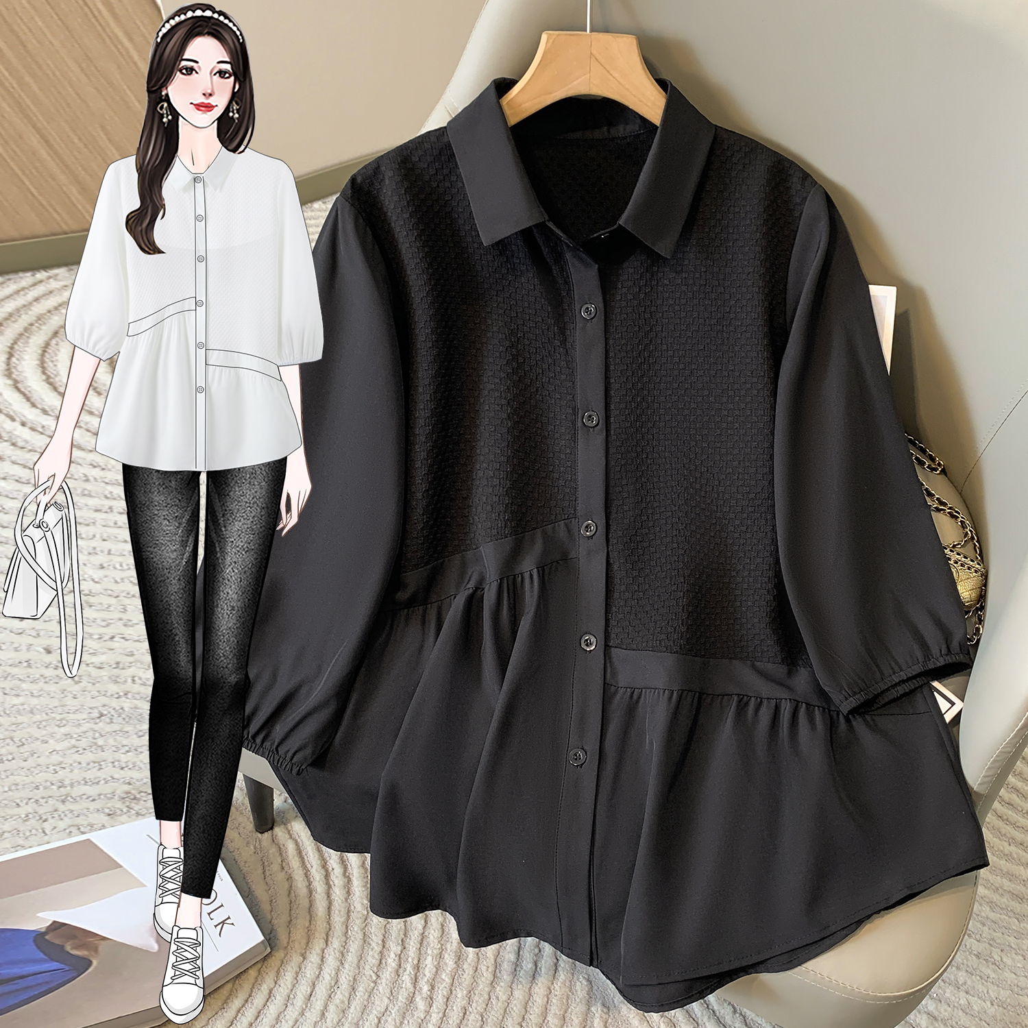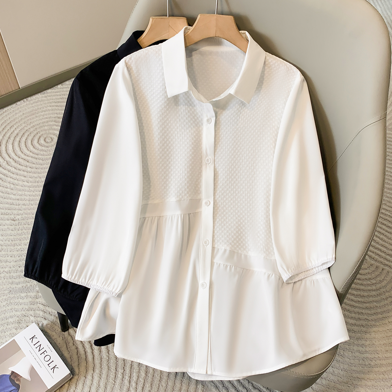 衬衣女时尚遮肚子七分袖上衣衬衫设计感洋气质打底衫