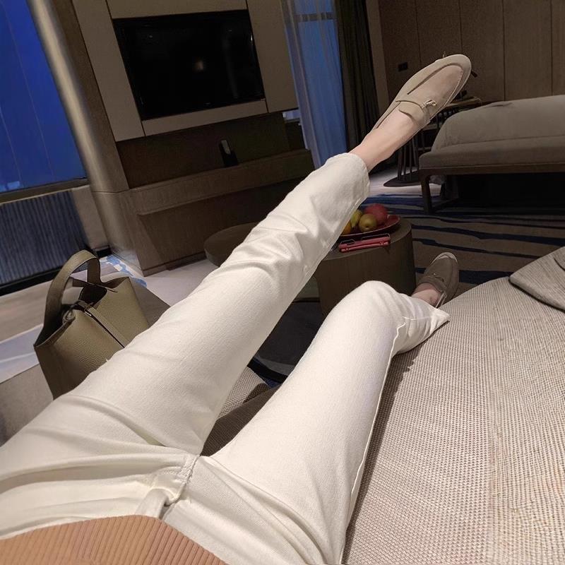 米白色直筒春秋夏季牛仔裤女2025新款薄款八九分小个子弹力烟管裤