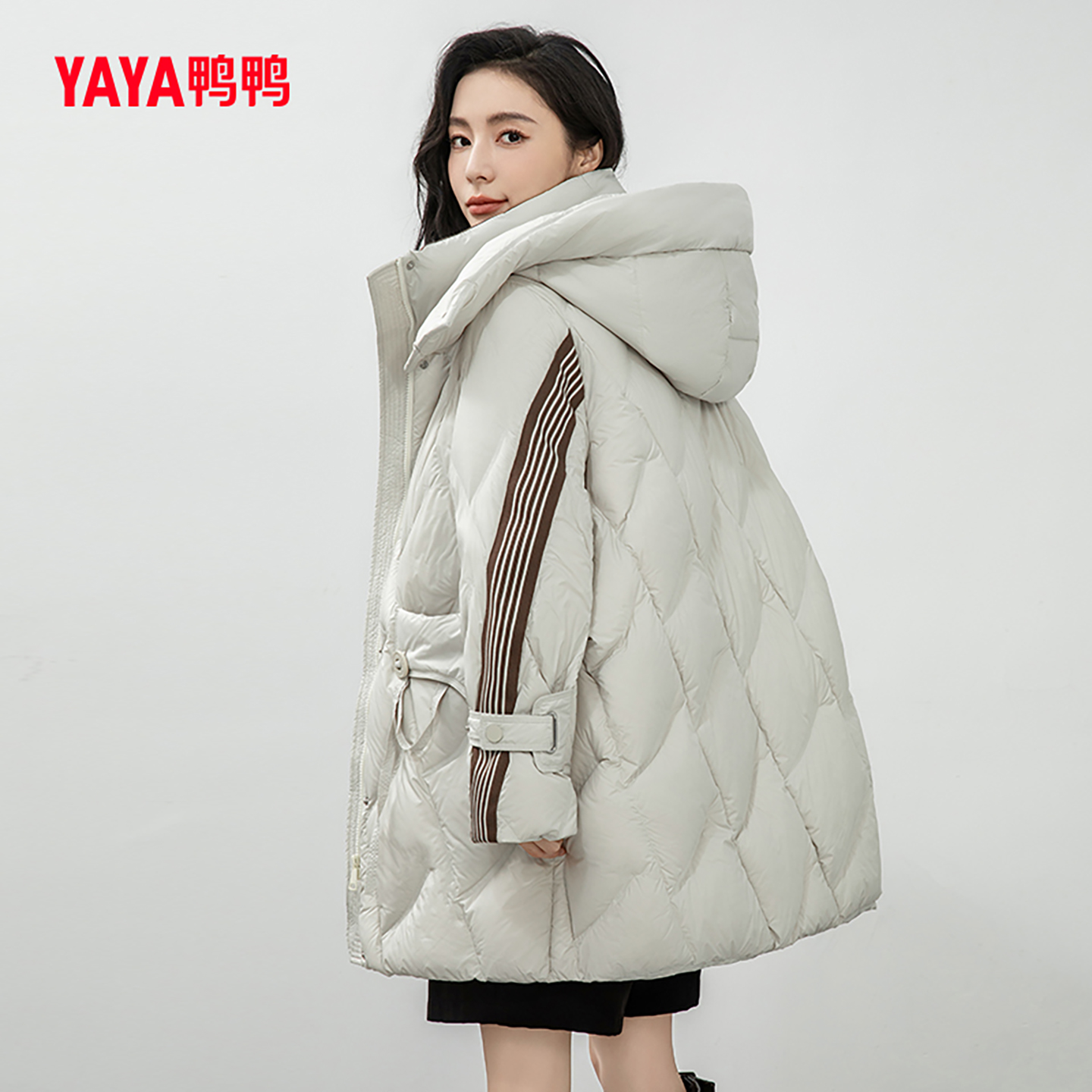 鸭鸭羽绒服女2023年秋季新款中长款连帽时尚休闲鸭绒保暖外套Y