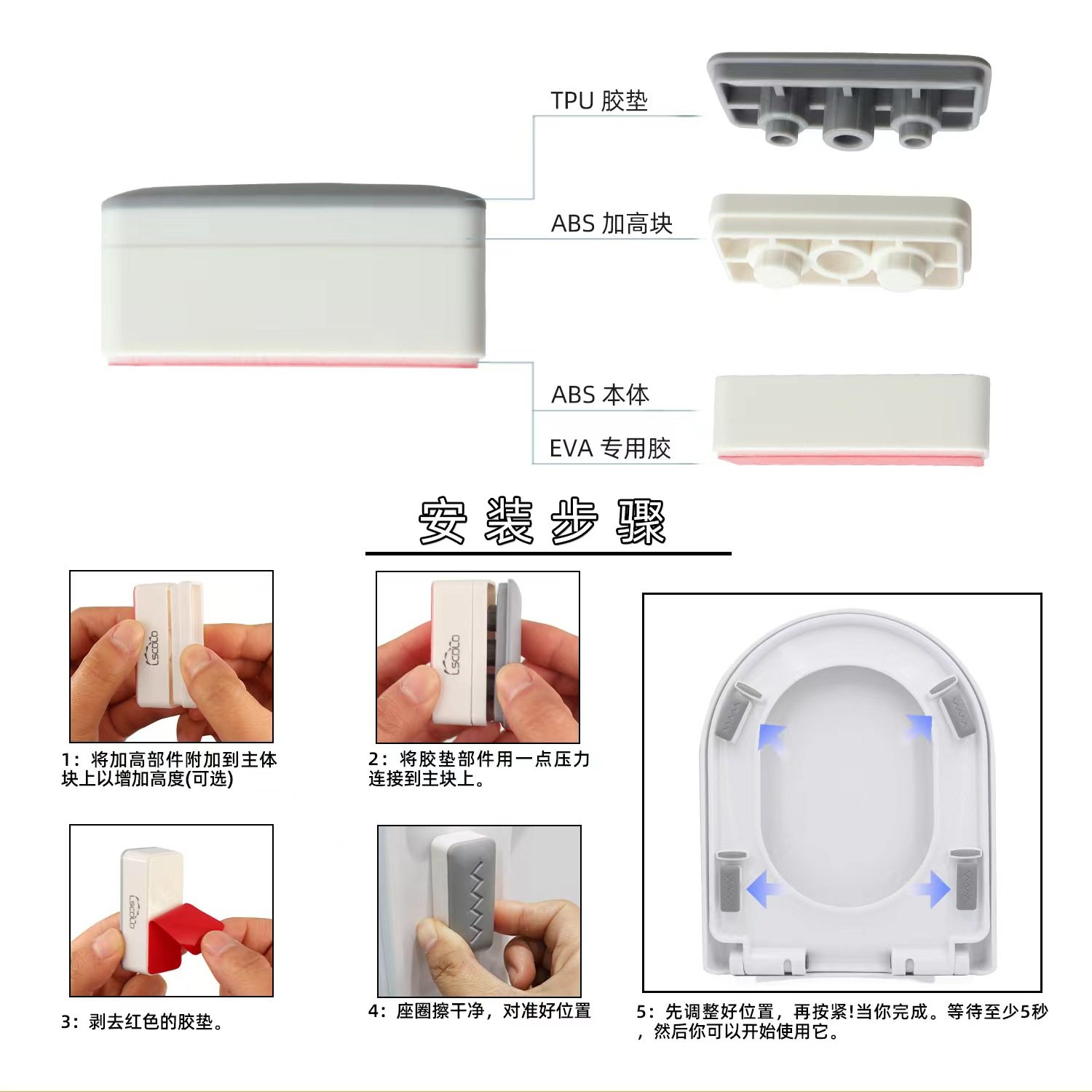 马桶圈配件盖板垫片加高座圈缓冲垫片坐便器盖板静音胶垫