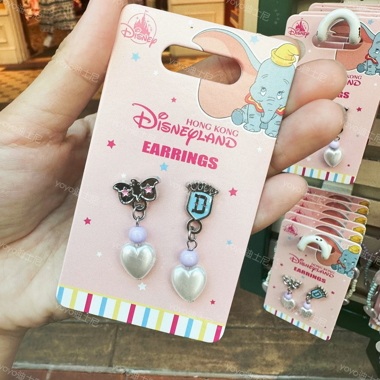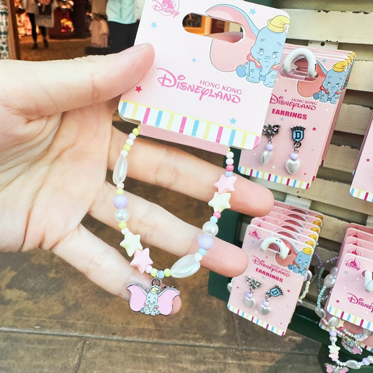 香港迪士尼 2023小飞象 丹波 可爱卡通穿珠珠吊坠耳钉 手链配饰