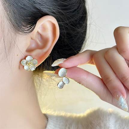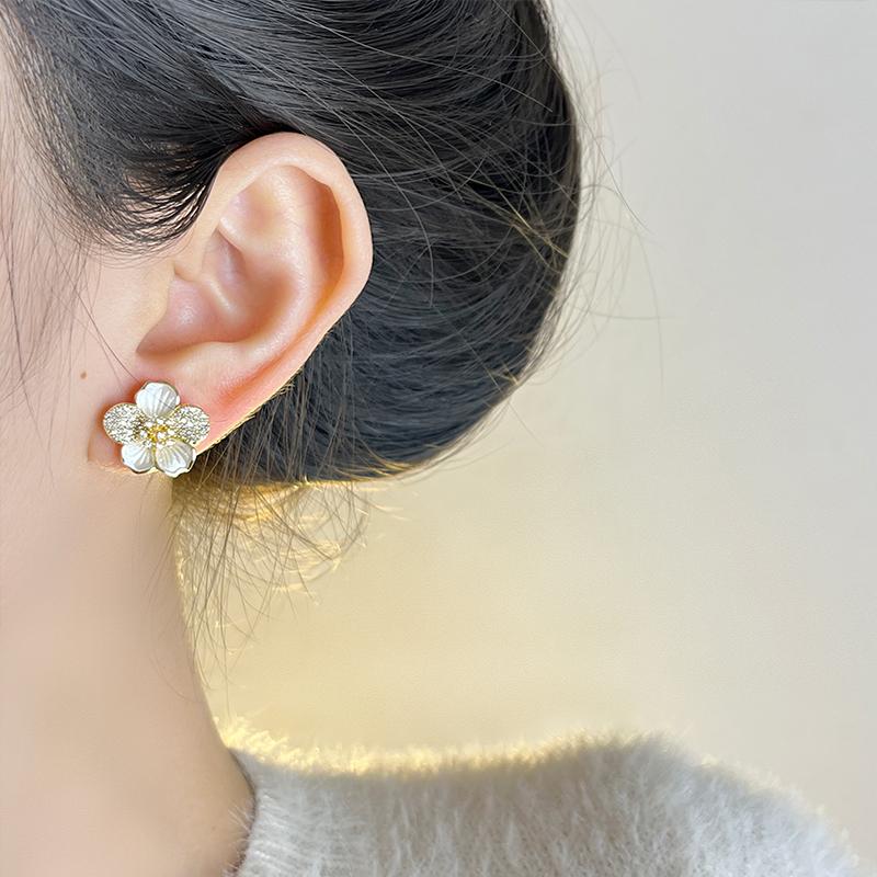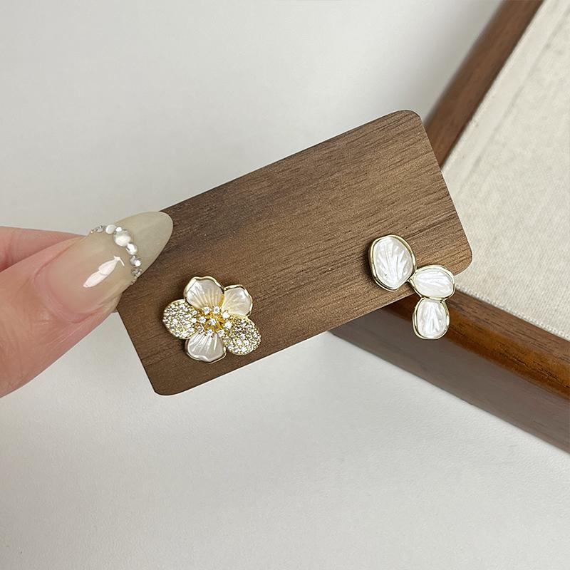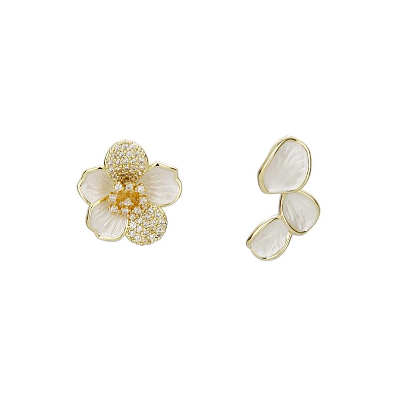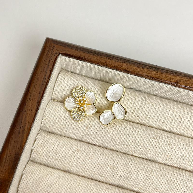 甜美滴油不对称花朵锆石耳钉女优雅轻奢小众设计感耳环气质耳饰品