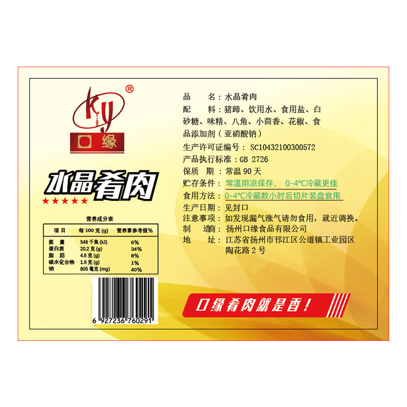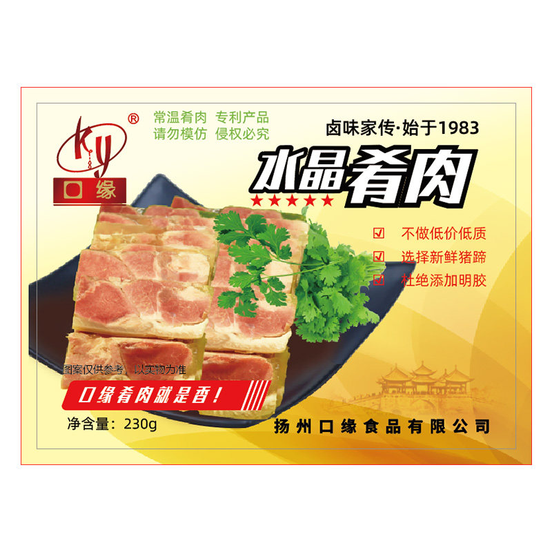 扬州特产口缘水晶肴肉230g手工猪蹄皮冻卤肉凉菜开袋即食宴客送礼
