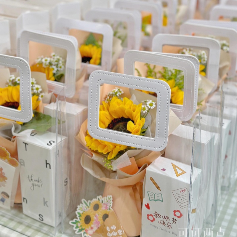 2025教师节透明礼品袋鲜花手提袋老师伴手礼蛋糕甜品月饼包装盒子