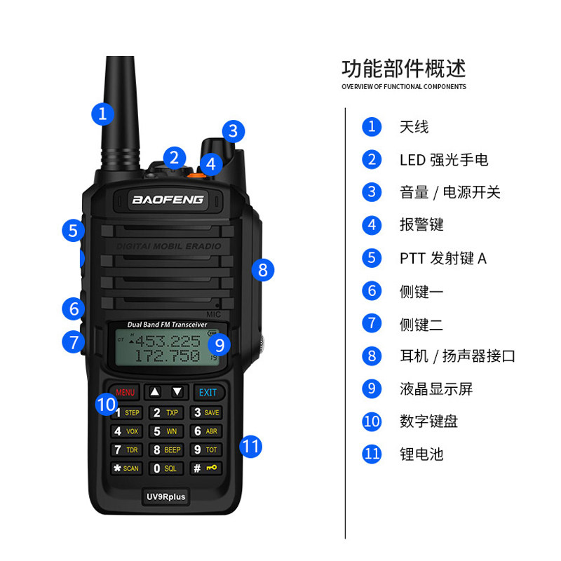 宝锋BF-UV9R PLUS防水对讲机船用高频远距离手台大功率5r自驾游器