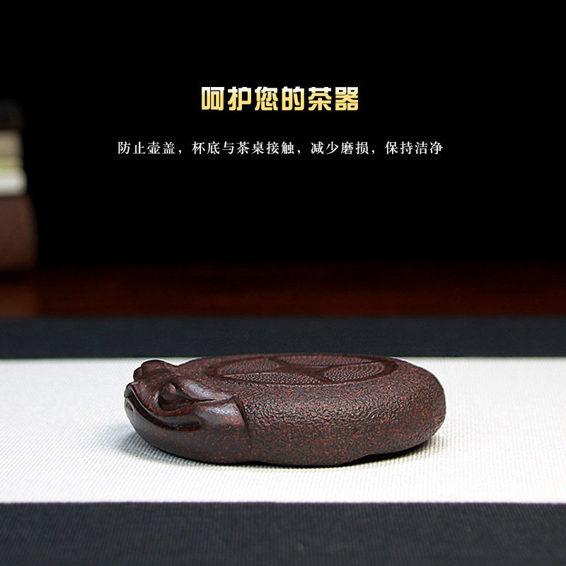 宜兴紫砂茶宠金蟾盖置杯托创意摆件茶玩杂件纯手工原矿紫砂