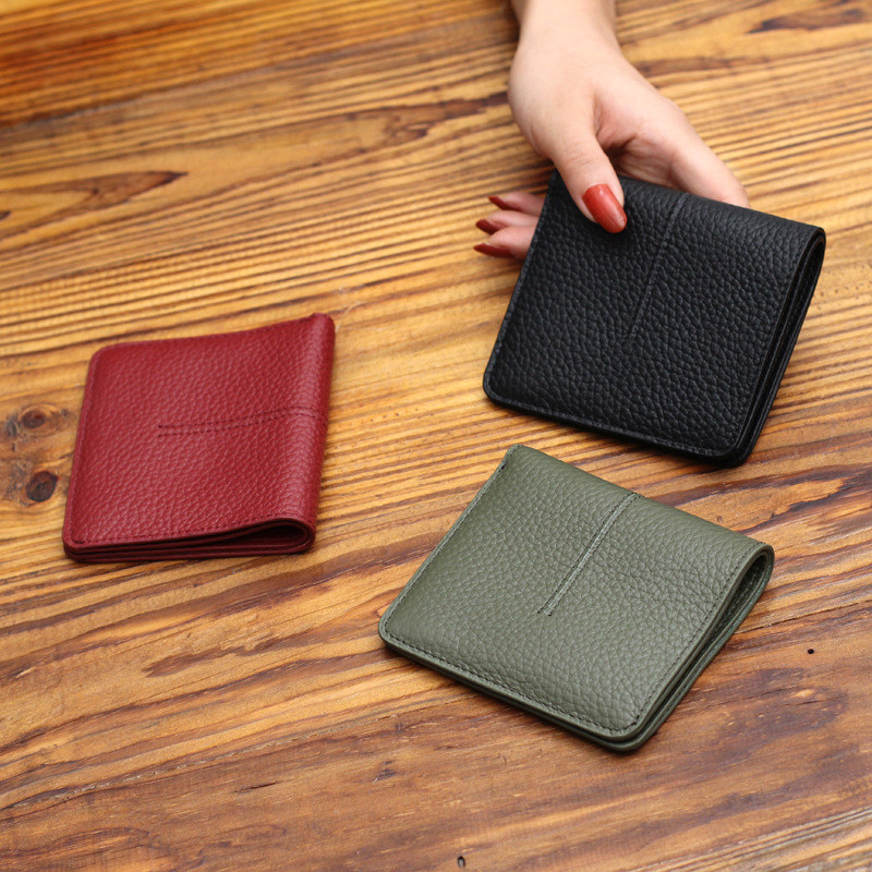 头层牛皮小钱包女士短款2025新款高级感折叠真皮超薄简约皮夹卡包