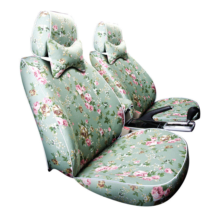 新款女士汽车座套布艺全包专用四季通用可爱座垫套棉帆布田园网红