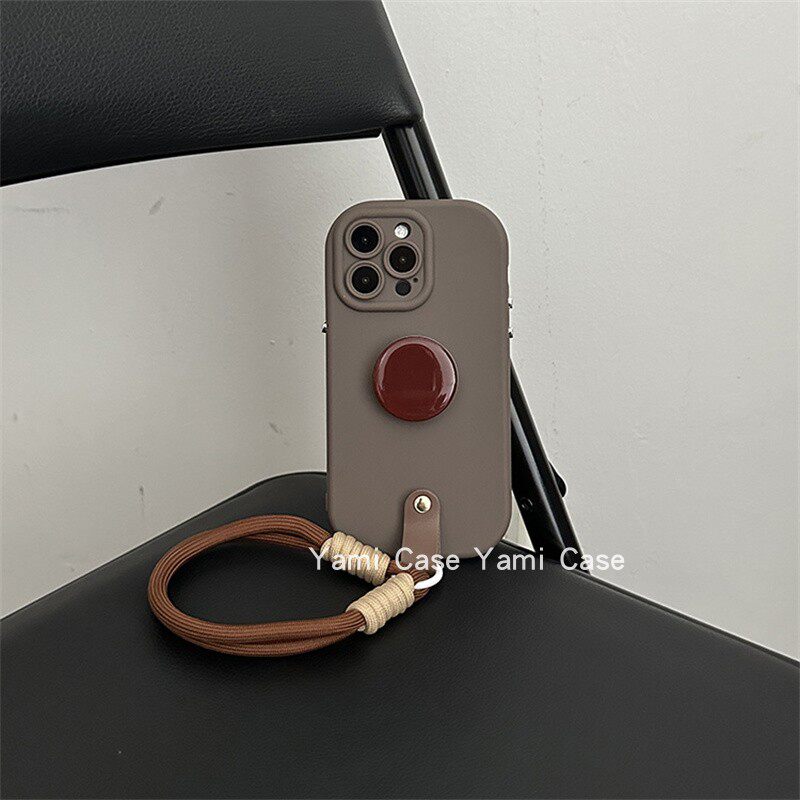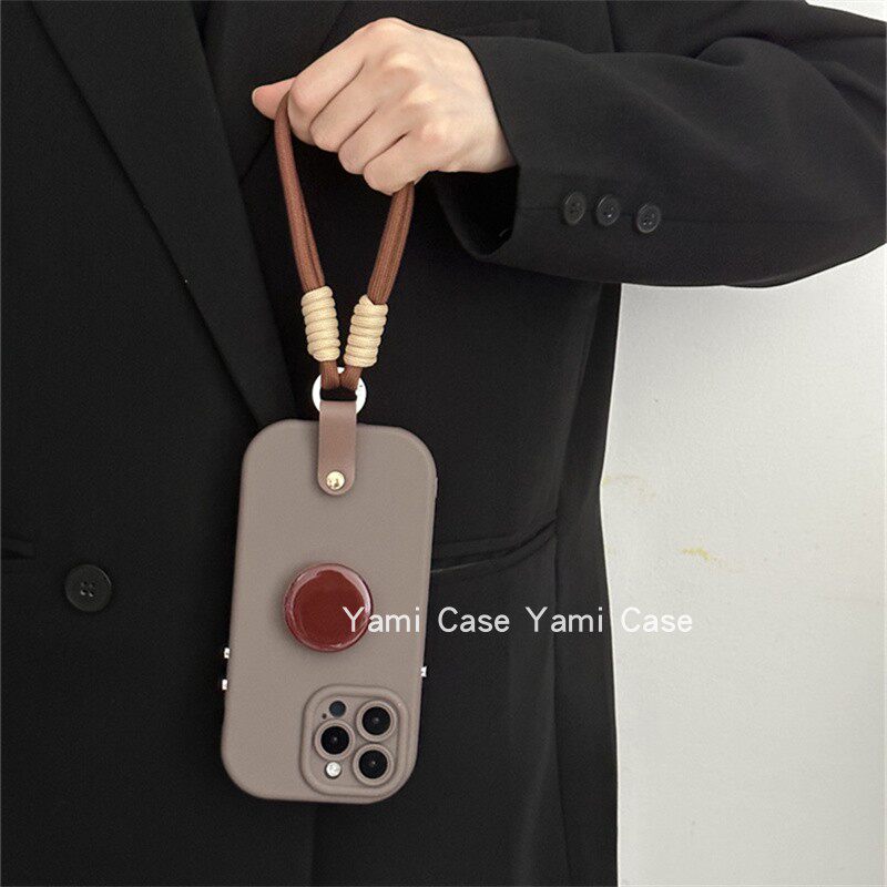 简约红棕亮圆支架17promax适用苹果15promax手机壳13小众16pro复古咖色12软胶磨砂11全包防摔xs保护套