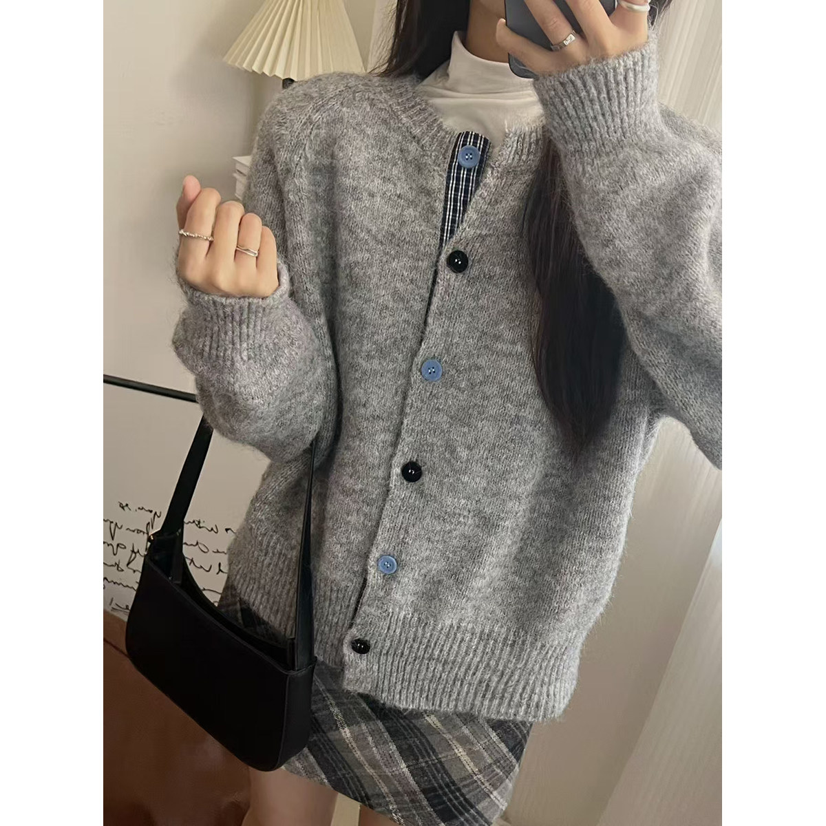日系软妹学院风小清新宽松针织开衫秋冬新款慵懒毛衣少女外套上衣
