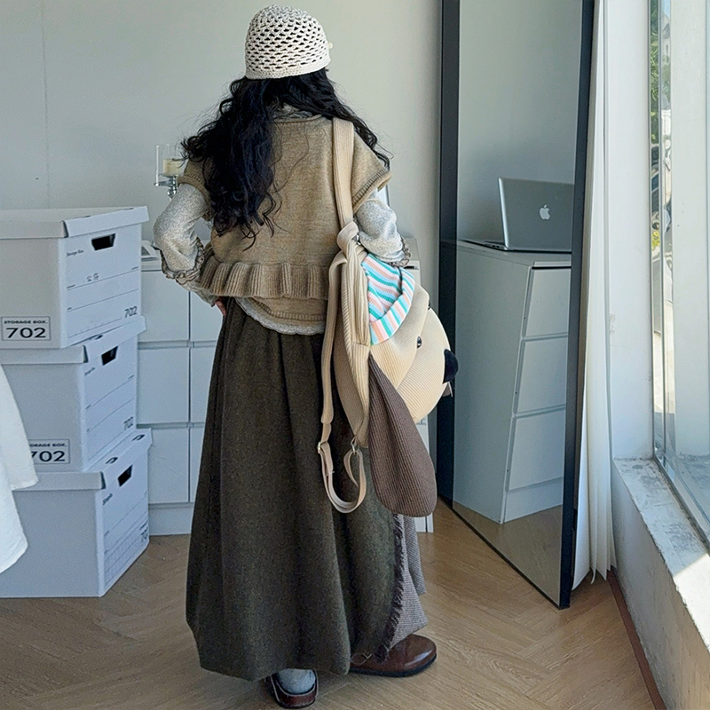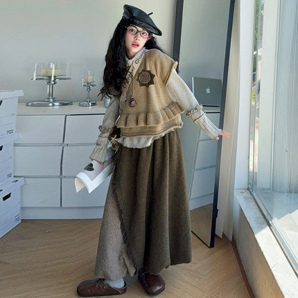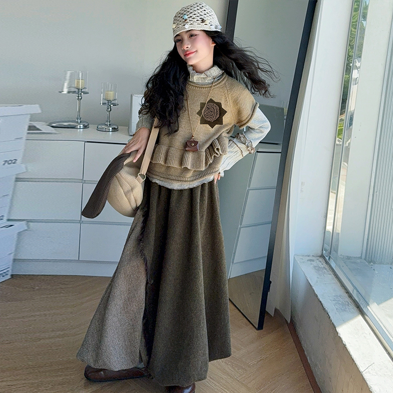 女童毛衣套装春秋装2025新款女孩中大童针织衫马甲半身裙三件套冬
