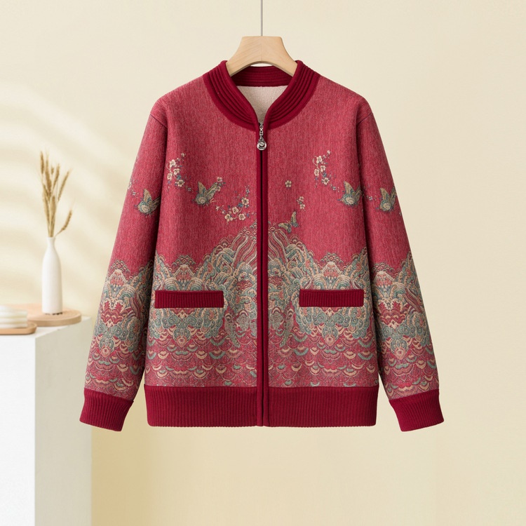 中老年人妈妈装冬装毛衣外套女60岁70老太太开衫奶奶装加厚绒上衣
