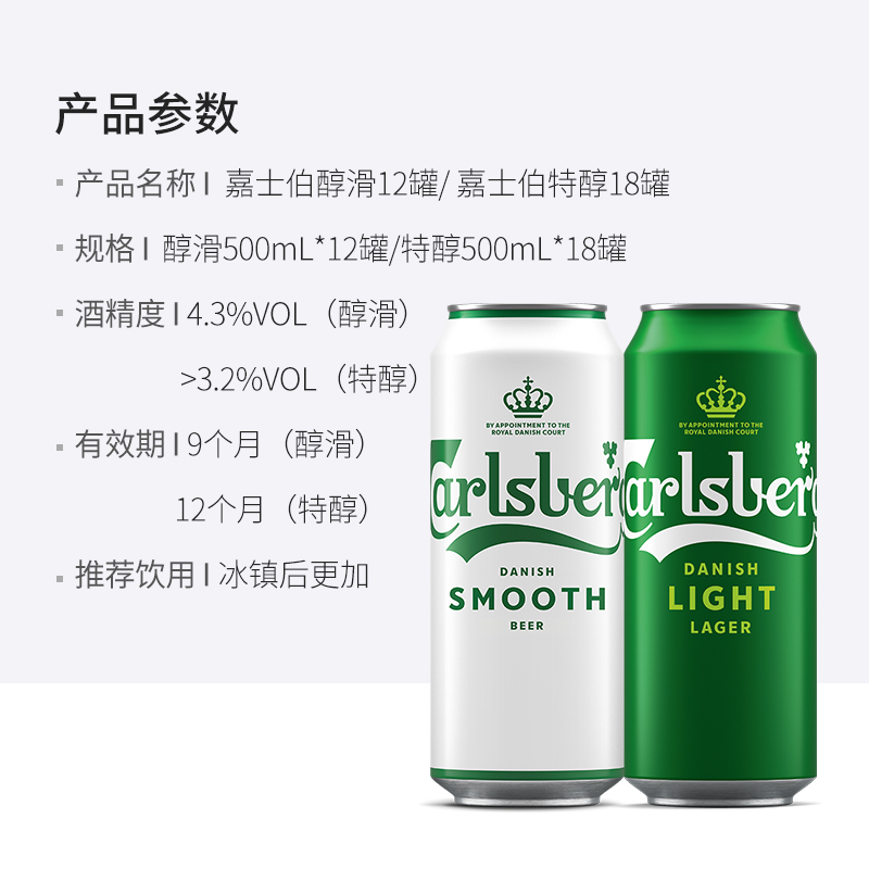 嘉士伯啤酒500ml*18醇滑500ml*12