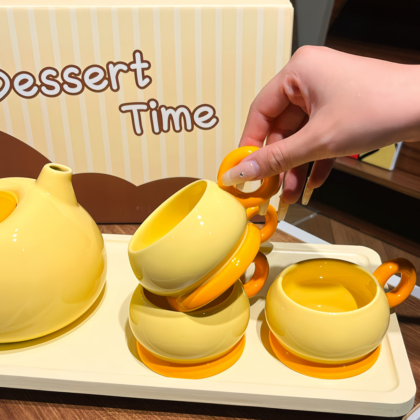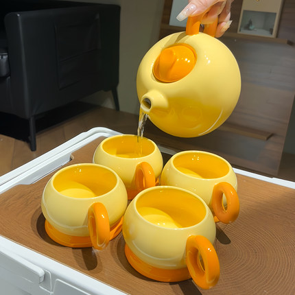 高颜值陶瓷南瓜泡茶壶水杯套装