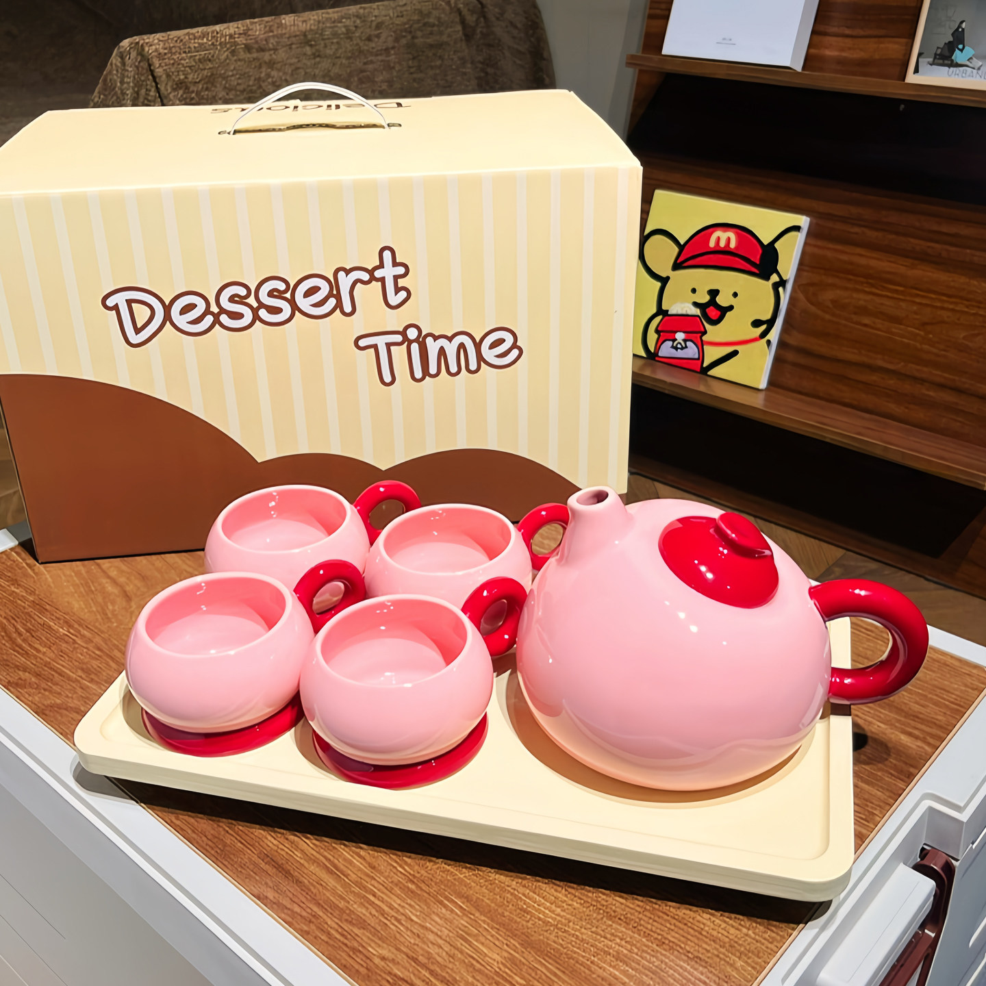 网红水具套装可爱家用待客喝水杯茶杯精致陶瓷泡茶壶乔迁新居送礼