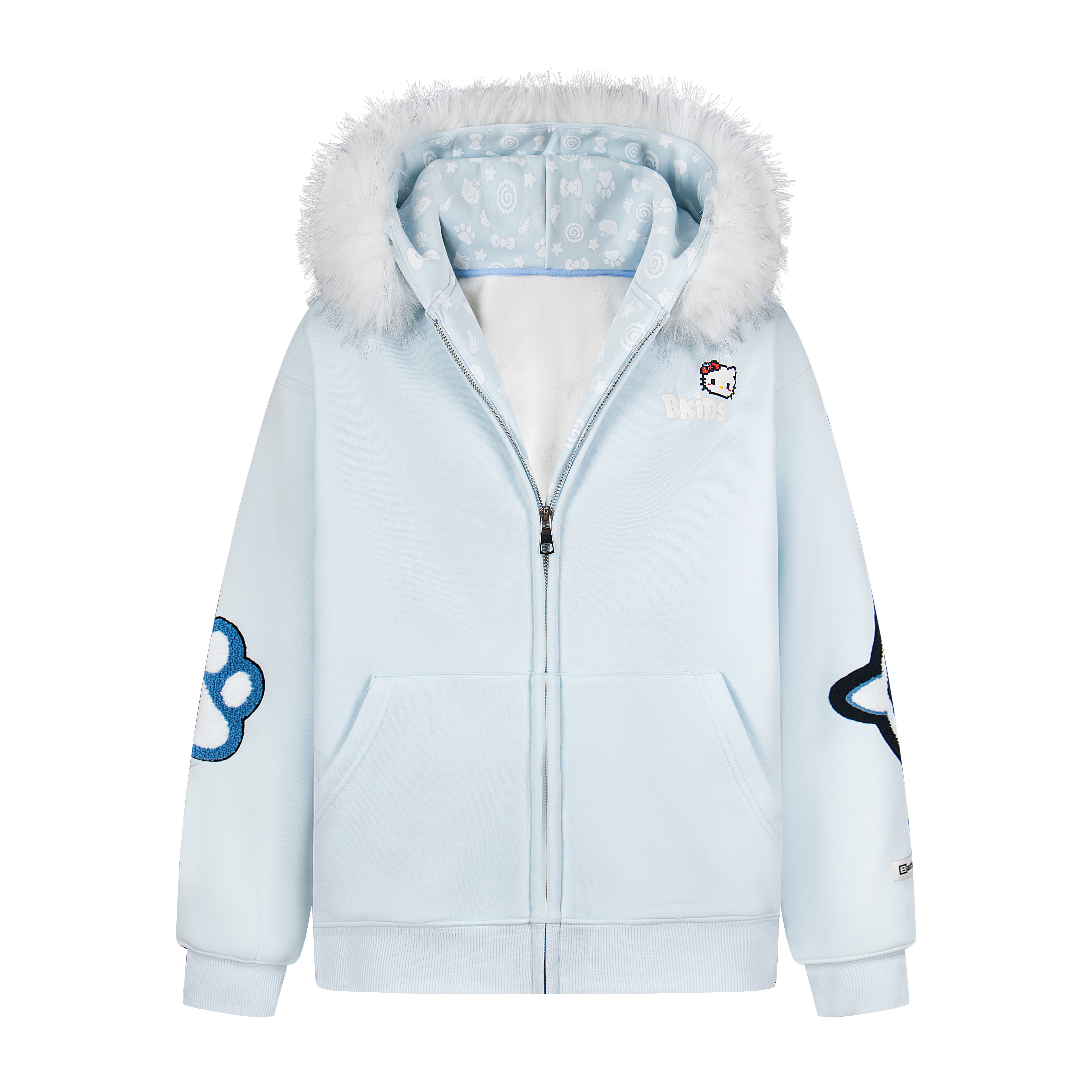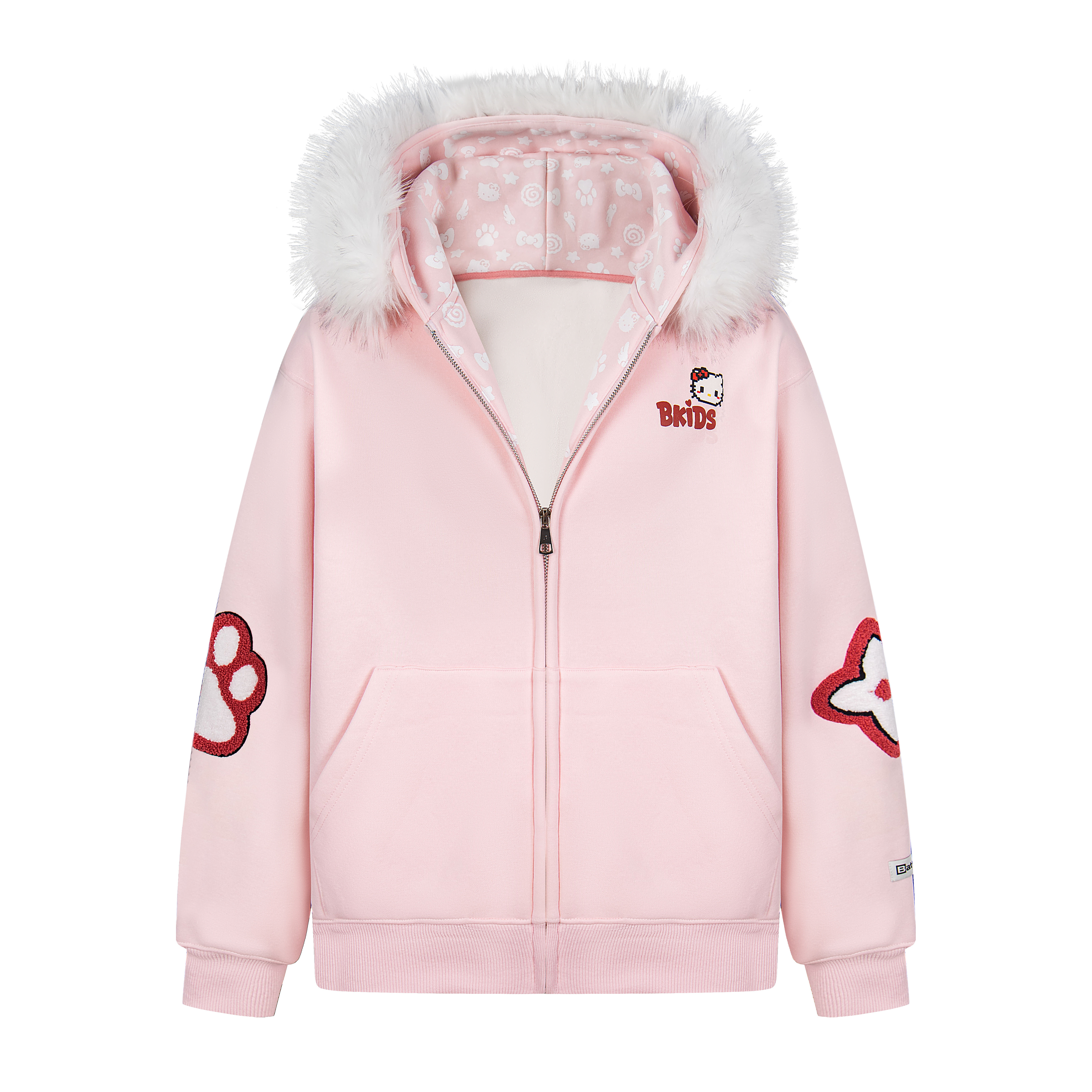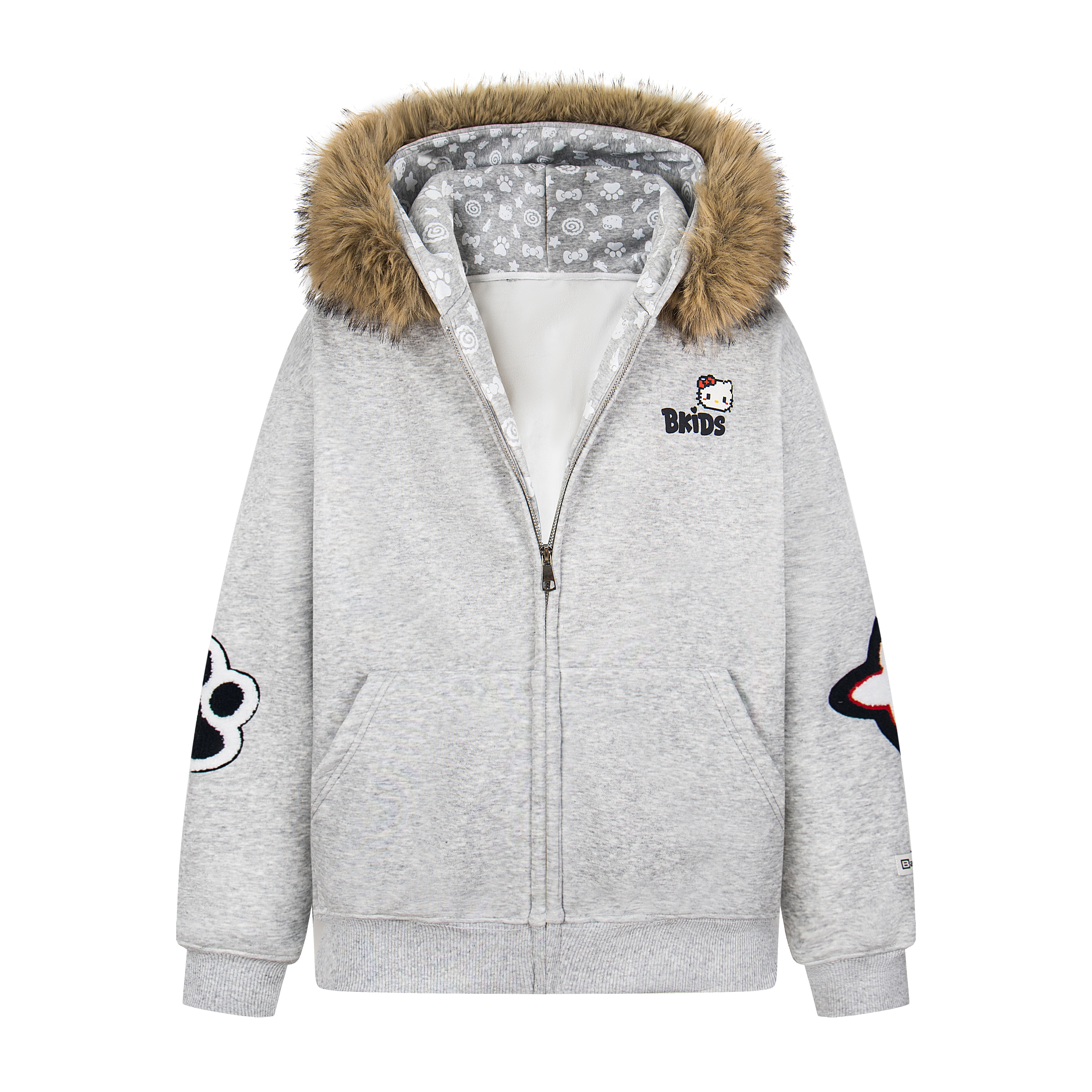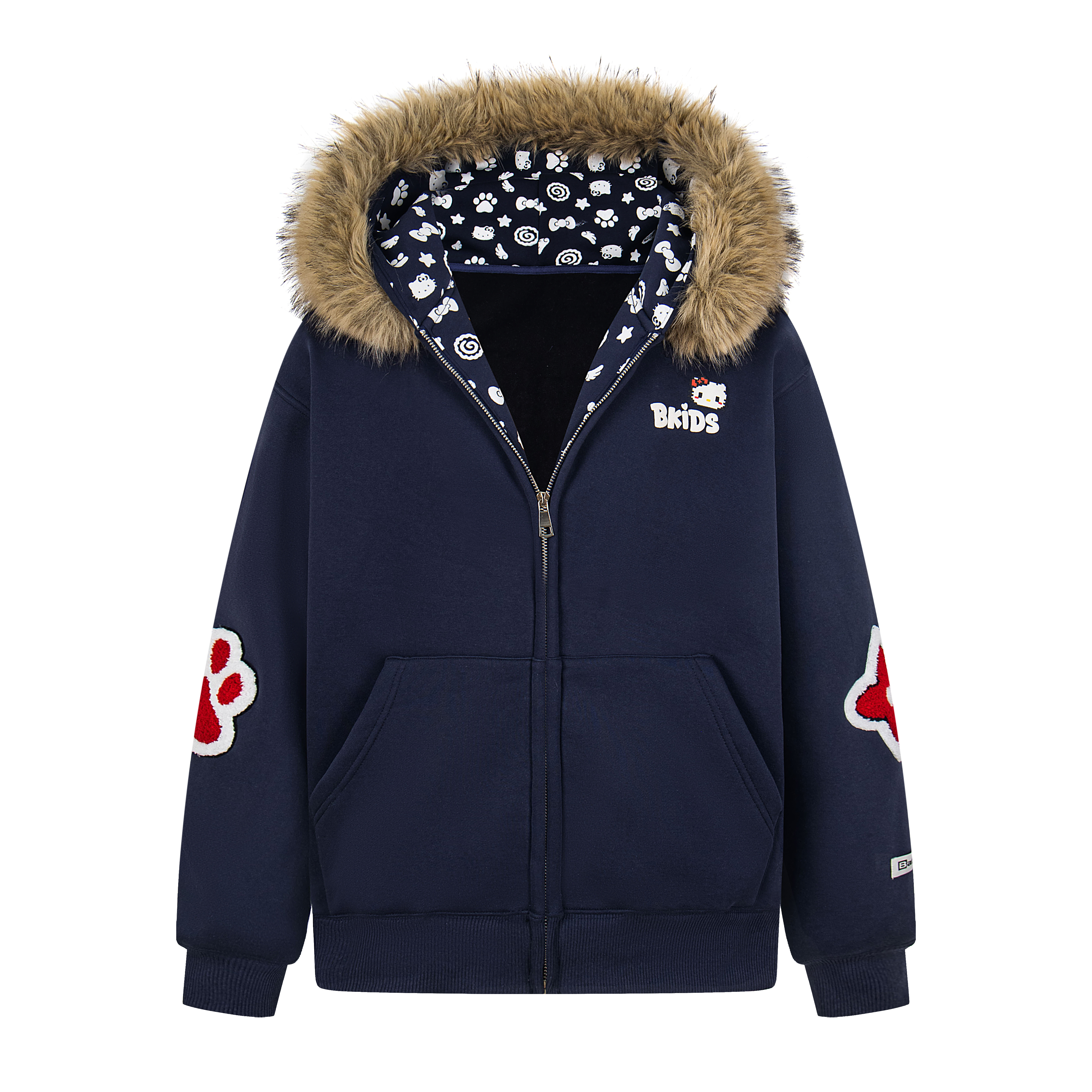 文文不乖 原创美式复古凯蒂猫毛领连帽外套字母刺绣女秋冬宽松